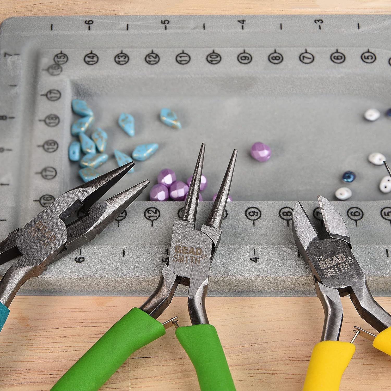 - COLOR CODED: The Beadsmith Color-ID pliers were designed to ensure you pick up the right tool every time! Each plier features an easily identifiable color handle, ensuring you always reach for the correct tool. All the pliers are lap-joint constructed with polished steel heads, and double-leaf springs for a smooth operation.