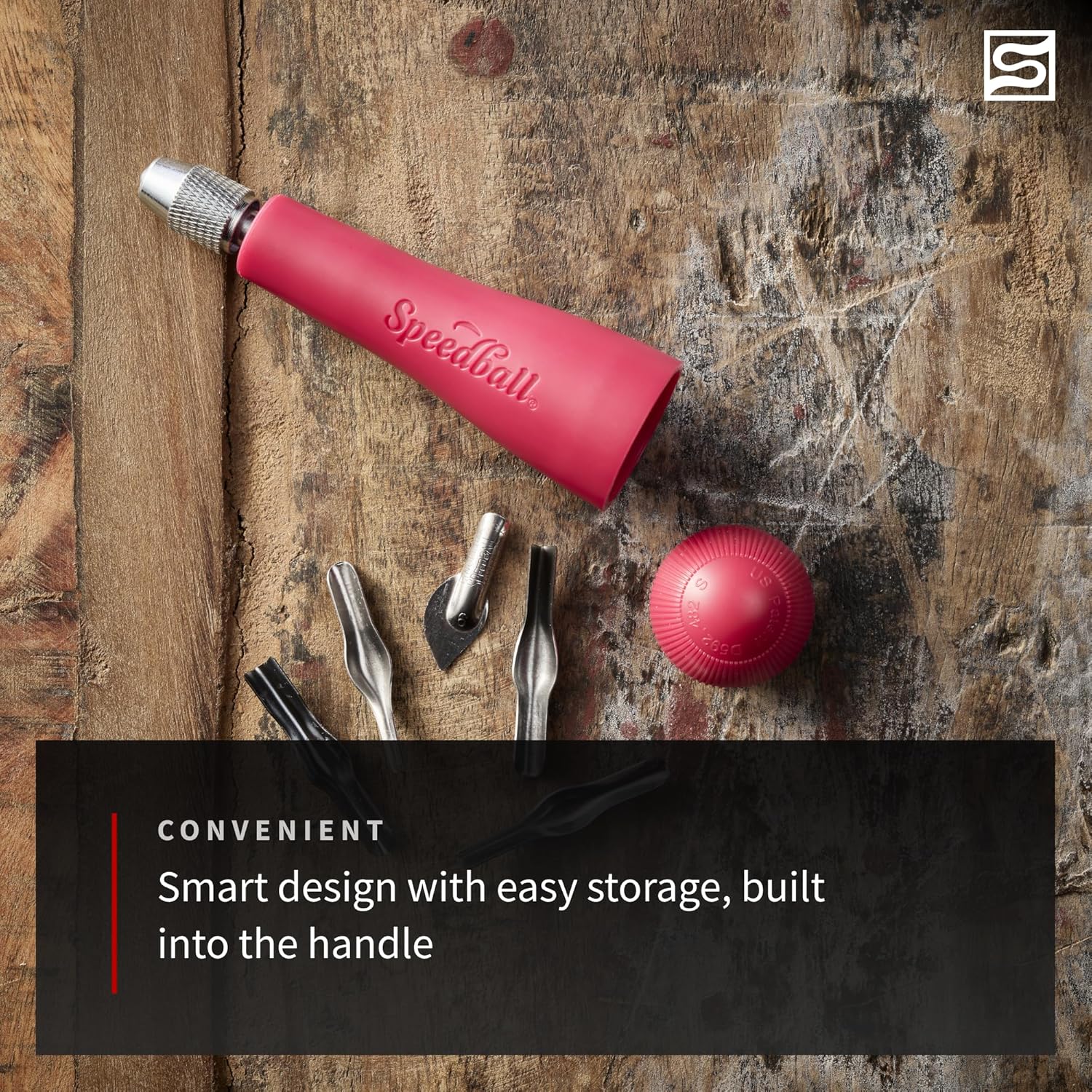 Speedball 4131 Linoleum Cutter – 5 Assorted Lino Cutters Includes Plastic Storage Handle, Made in The USA