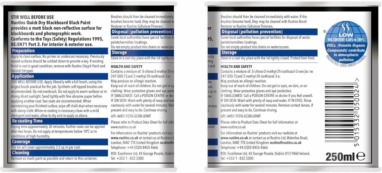 - Easy Application for Instant Creativity: Apply with ease and let your imagination flow. Rustins Blackboard Black Paint is designed for hassle-free application. ADD TO CART now for your creative haven.