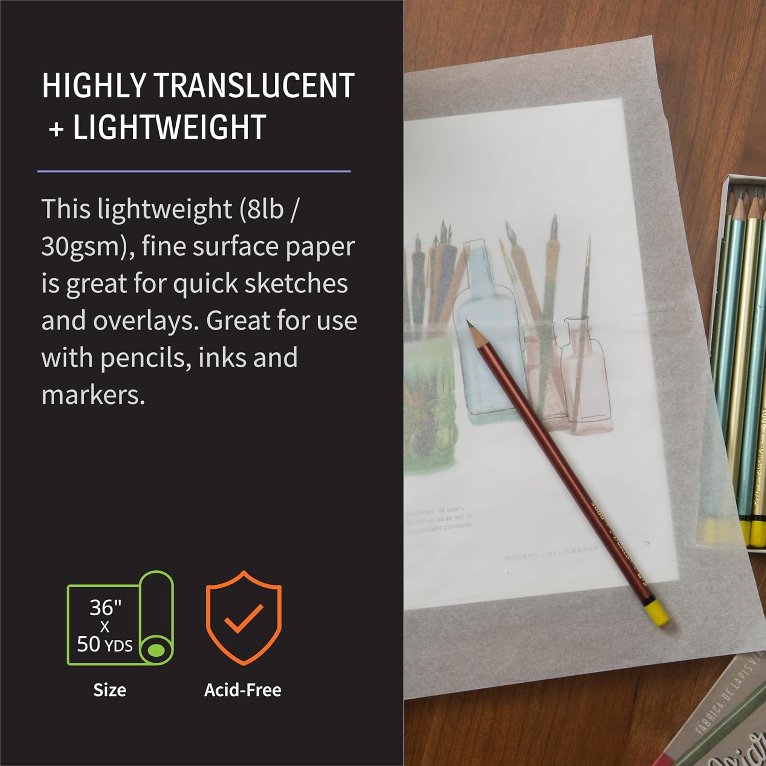 - A MULTITUDE OF USES: Works best for quick sketches, overlays, pattern making, tracing, and larger school projects. Kids will love this roll of pattern making paper as it is a go-to paper for tracing activities, for pencil drawing, crafting, color painting, sketch drawing, or just using a fine liner. Our tracing paper roll can be used and cut down to fit the size of any project!