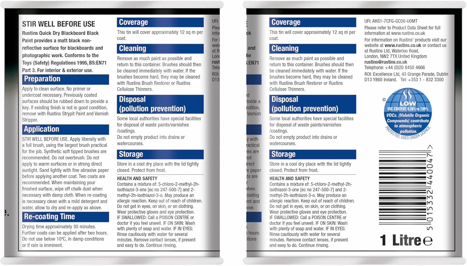 - Easy Application for Instant Creativity: Apply with ease and let your imagination flow. Rustins Blackboard Black Paint is designed for hassle-free application. ADD TO CART now for your creative haven.
