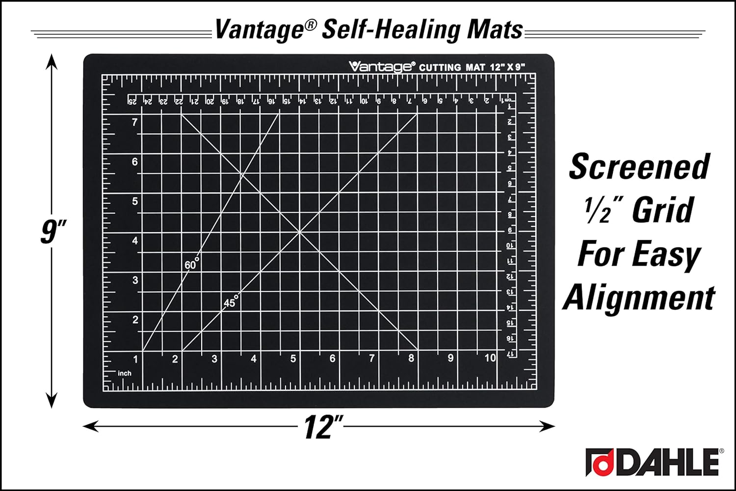 Dahle Vantage 10670 Premium Self-Healing Cutting Mat, 9"x12", 1/2" Grid, 5 Layers for Max Healing, Perfect for Crafts & Sewing, Black