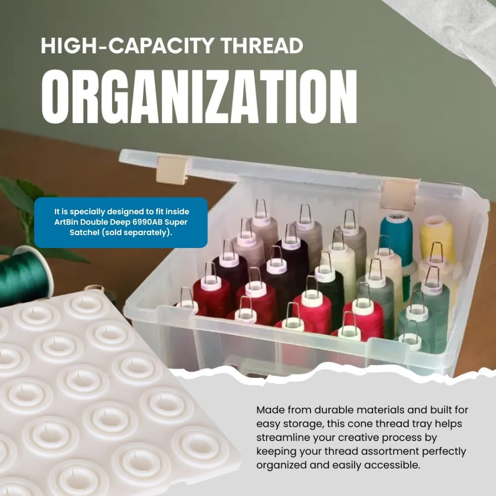- Compatibility: the ArtBin Cone Thread Tray accommodates thread cones like Maxi-Lok cones, Woolley cone, King Tut 2,000 cones, and 1,100yd embroidery thread. It is specially designed to fit inside ArtBin Double Deep 6990AB Super Satchel (sold separately).
