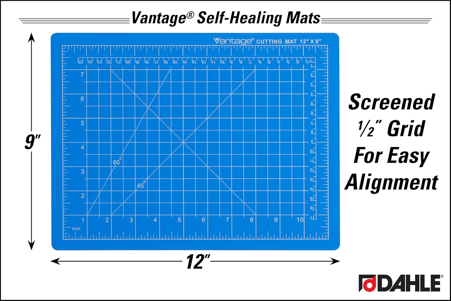 Dahle Vantage 10690 Premium Self-Healing Cutting Mat, 9"x12", 1/2" Grid, 5 Layers for Max Healing, Perfect for Crafts & Sewing, Blue