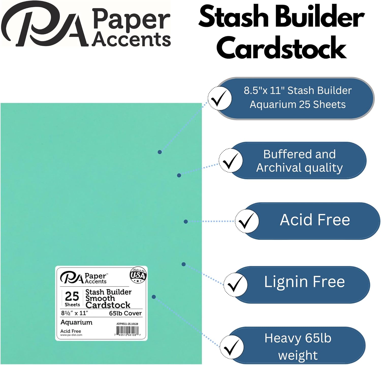 PA Paper Accents Stash Builder Cardstock 8.5" x 11" Aquarium, 65lb colored cardstock paper for card making, scrapbooking, printing, quilling and crafts, 25 piece pack
