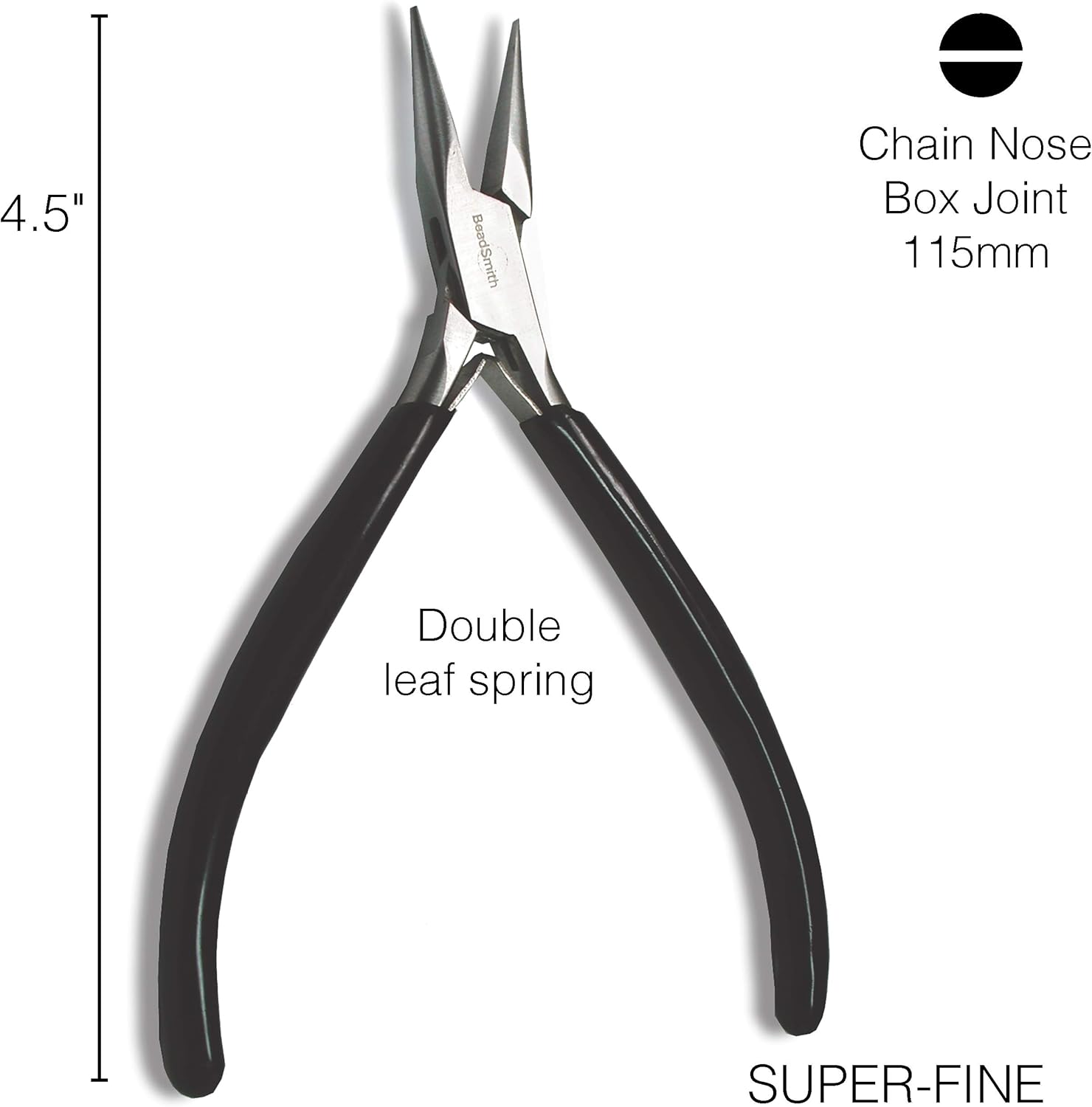 The Beadsmith Chain Nose Pliers – Extra Fine Tips – 4.5 inches (114mm) – PVC Grip Handle with Double Leaf Springs – Jewelry Making Tool for Creating Bracelets, Earrings and Necklaces