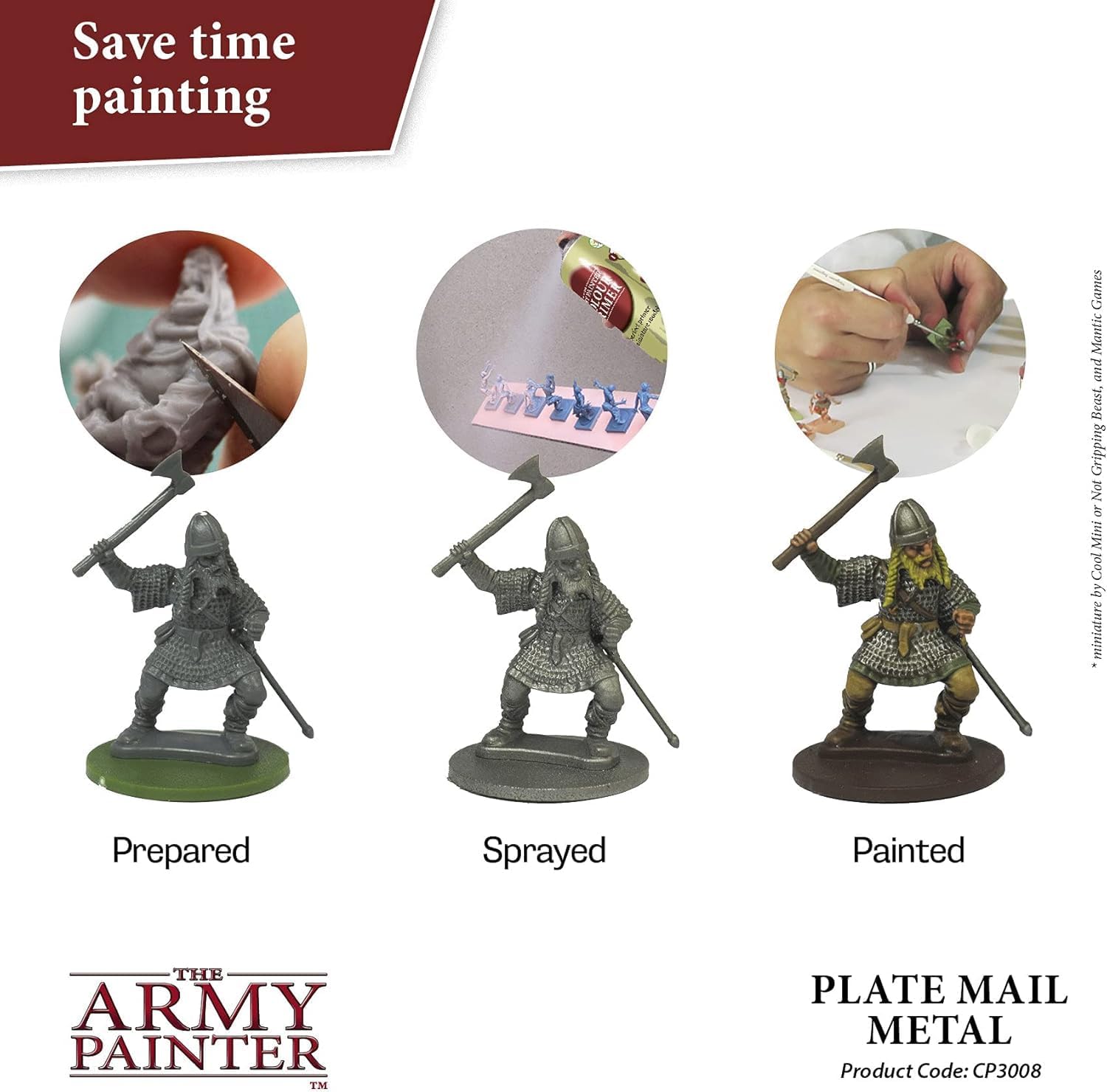 The Army Painter Colour Primer Plate Mail Metal, 400 mL Acrylic Spray Primer, Spray Paint Basecoat for Miniature Priming, Tabletop Roleplaying, Boardgames, and Wargames Miniature Modelling