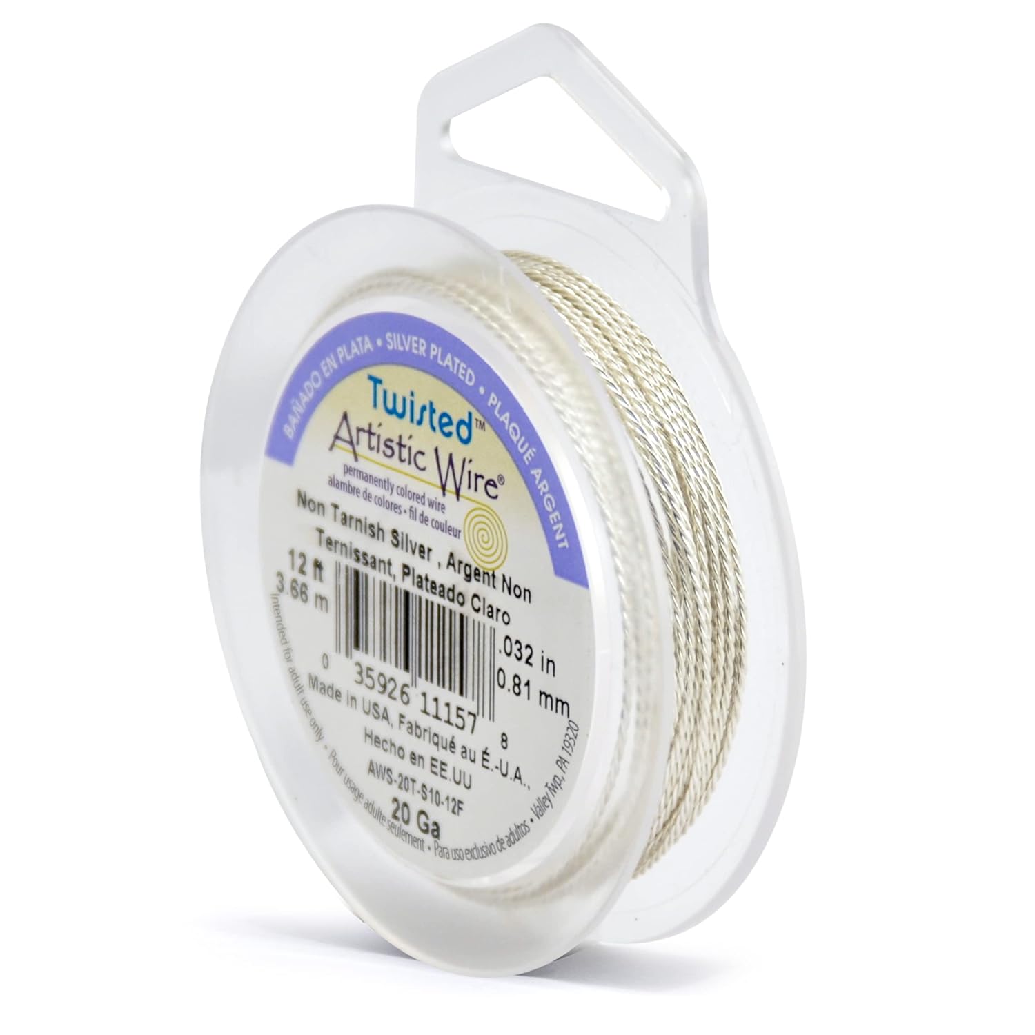 Artistic Wire, 20 Gauge / .81 mm Silver Plated Tarnish Resistant Colored Copper Craft Wire, Round Twist, Tarnish Resistant Silver, 12 ft / 3.65 m