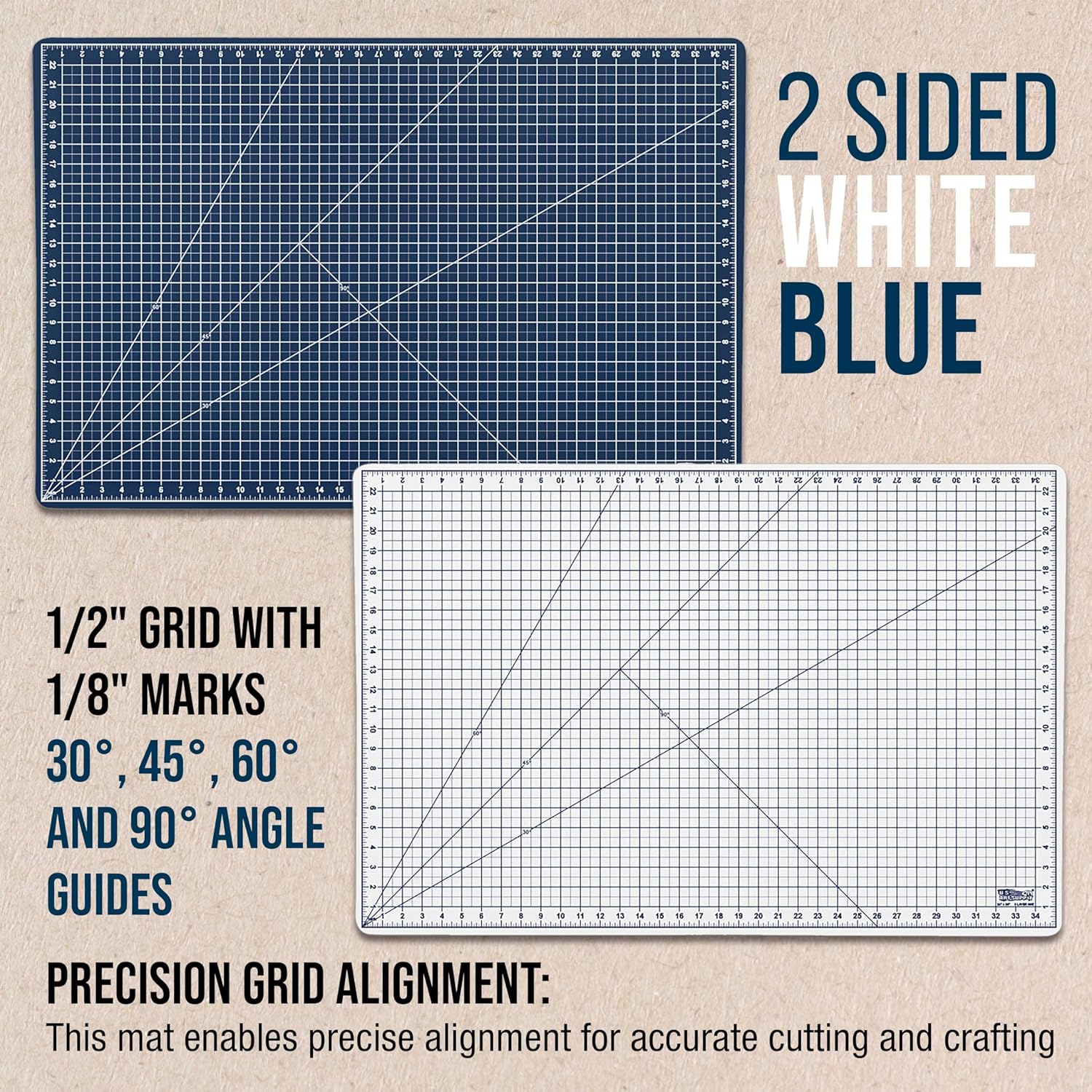 - Precision Grid System: Features detailed 1/2" grid with 1/8" marks; Includes 45Β° and 60Β° angle guides for accurate alignment; Measurements clearly marked; Essential measuring mat for crafting precision cutting