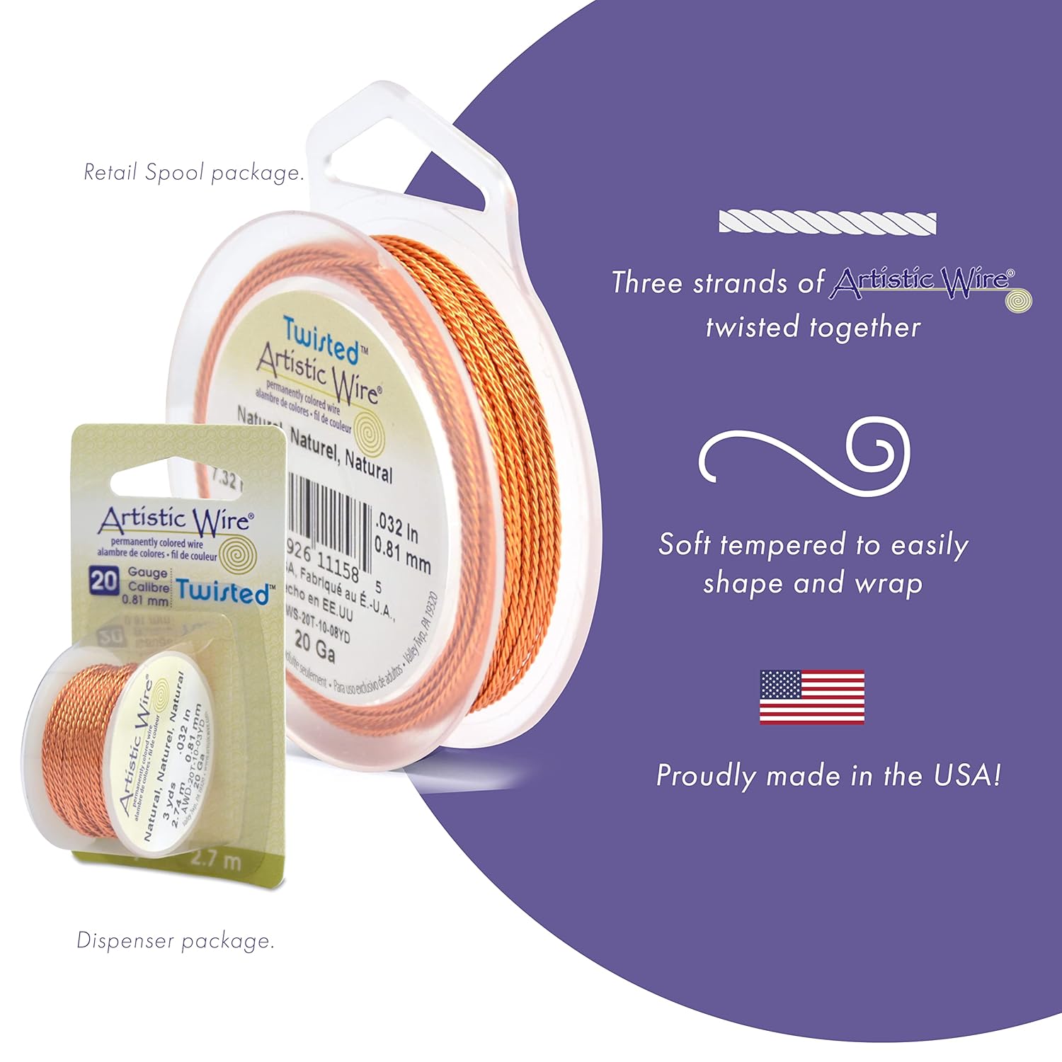 Artistic Wire, 20 Gauge / .81 mm Tarnish Resistant Colored Copper Craft Wire, Round Twist, Natural 8 yd / 7.31 m
