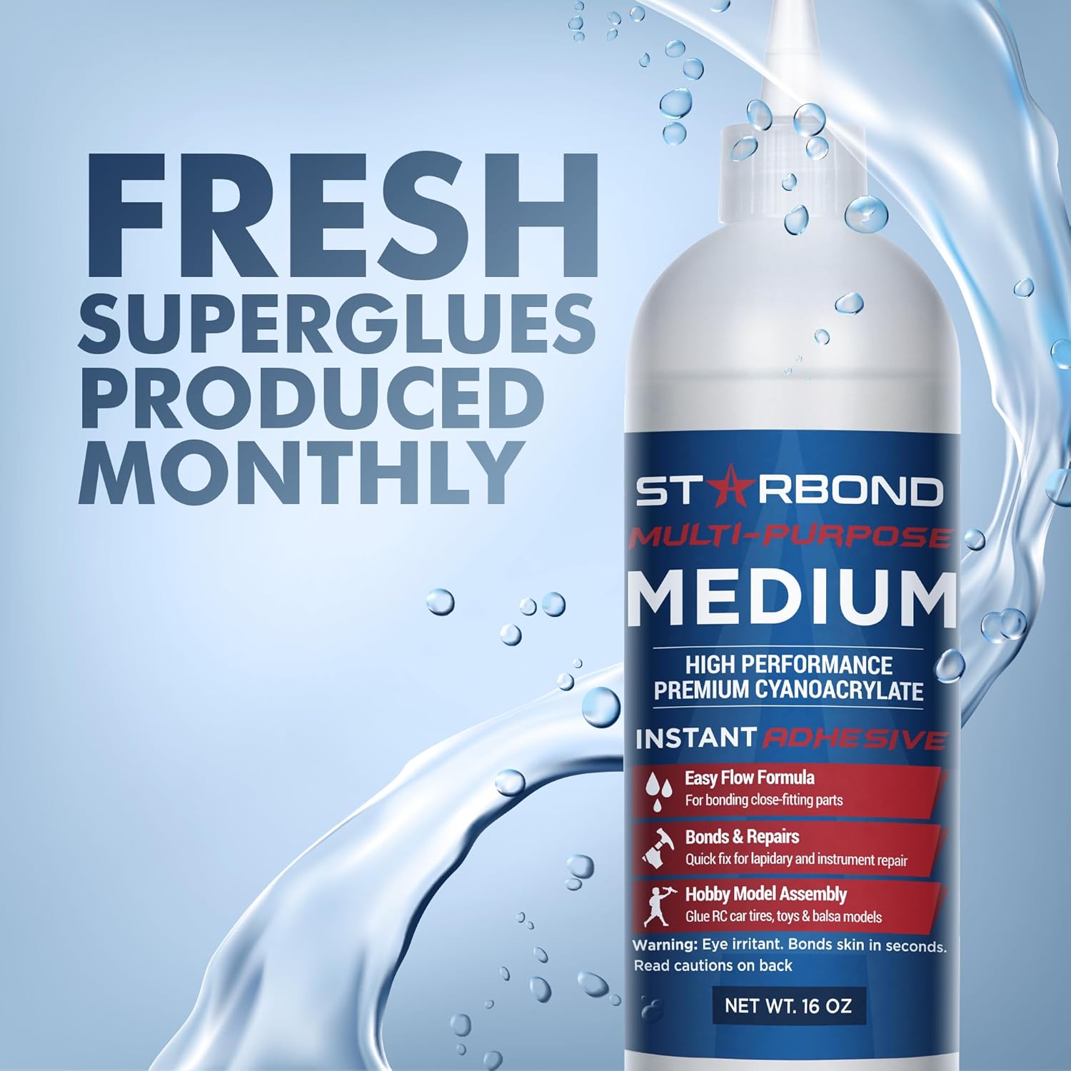Premium Grade Cyanoacrylate (CA) Medium Super Glue by Starbond - 16 oz. Complete Refill KIT (453g) - with Extra Bottles, Caps, Microtips - for Woodturning, Pen Turning, Hobby, Lapidary, Acrylic Nails