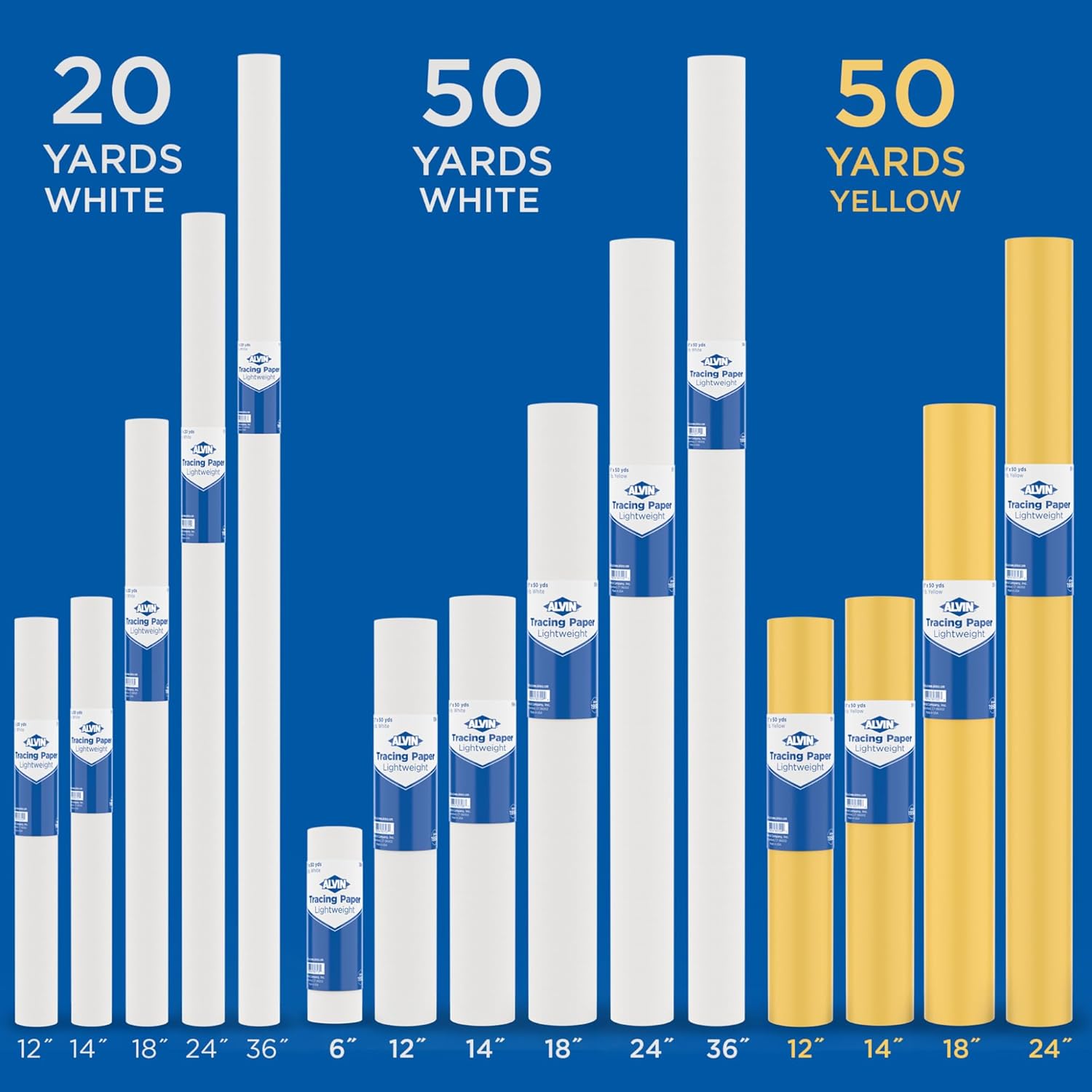 ALVIN 55W-H Lightweight Tracing Paper Roll, White, Suitable with Ink, Charcoal, Felt Tip Pen, for Sketching or Detailing - 14 Inches, 50 Yards, 1-inch Core