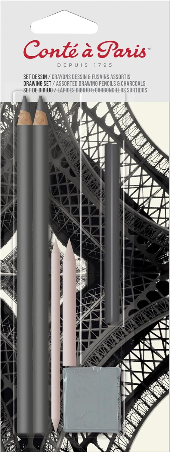 - Includes 2 Drawing Pencils, 1 compressed charcoal, 2 tortillons and 1 putty eraser