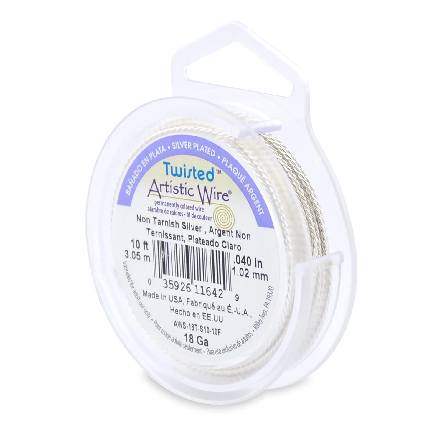 Artistic Wire, 18 Gauge / 1.0 mm Silver Plated Tarnish Resistant Colored Copper Craft Wire, Round Twist, Tarnish Resistant Silver, 10 ft / 3.1 m