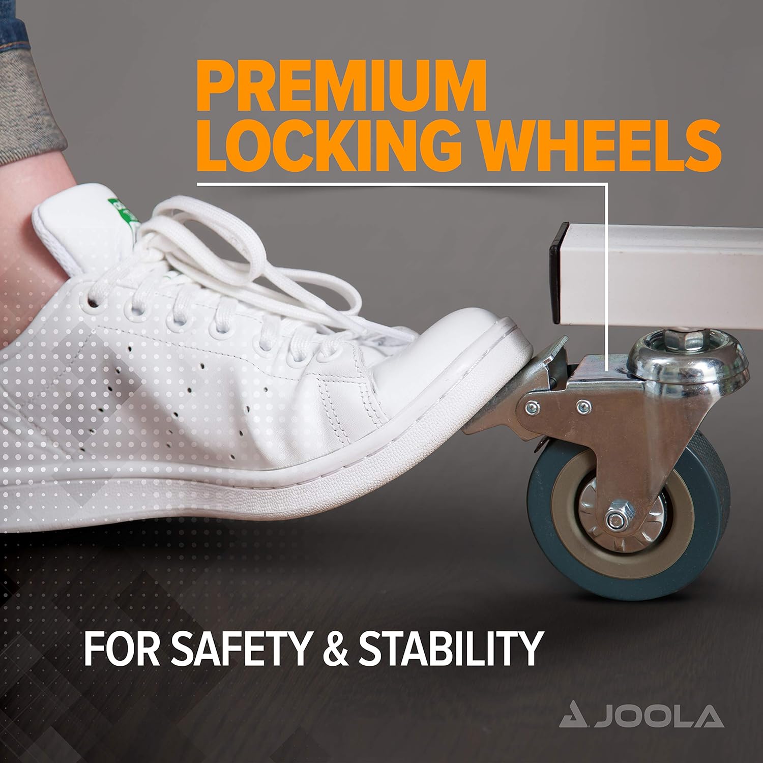- CORNER BALL HOLDERS AND ABACUS SCORER: In addition to the sleek, black top, the table features four ball holders and two magnetic abacus scorers making it a great, stylish addition to any home. Each ball holder holds 3 40mm JOOLA table tennis balls