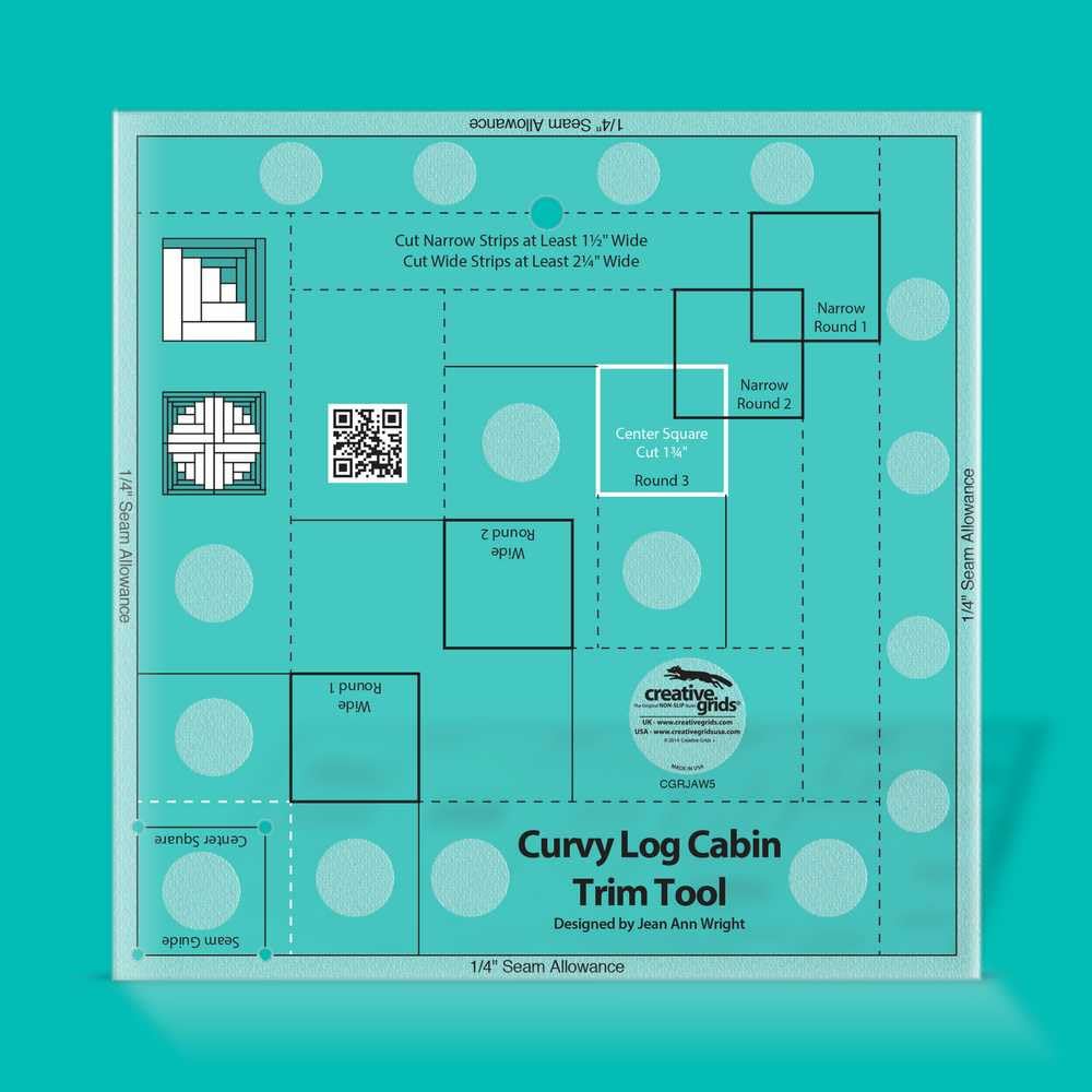 Creative Grids Curvy Log Cabin Trim Tool Quilt Ruler – CGRJAW5 – Made in USA, 8-1/2in x 8-1/2in, Non-Slip Grip Acrylic Quilting, Sewing, Crafting, Patchwork Ruler & Template