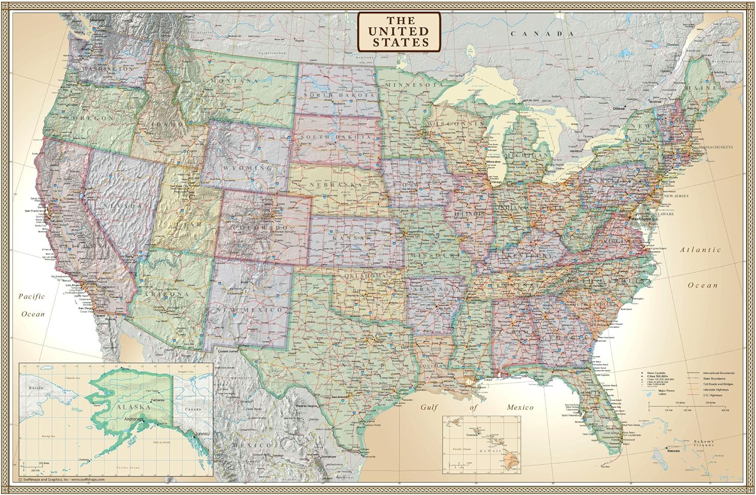 24x36 United States, USA US Executive Wall Map Poster Mural (24x36 Laminated)