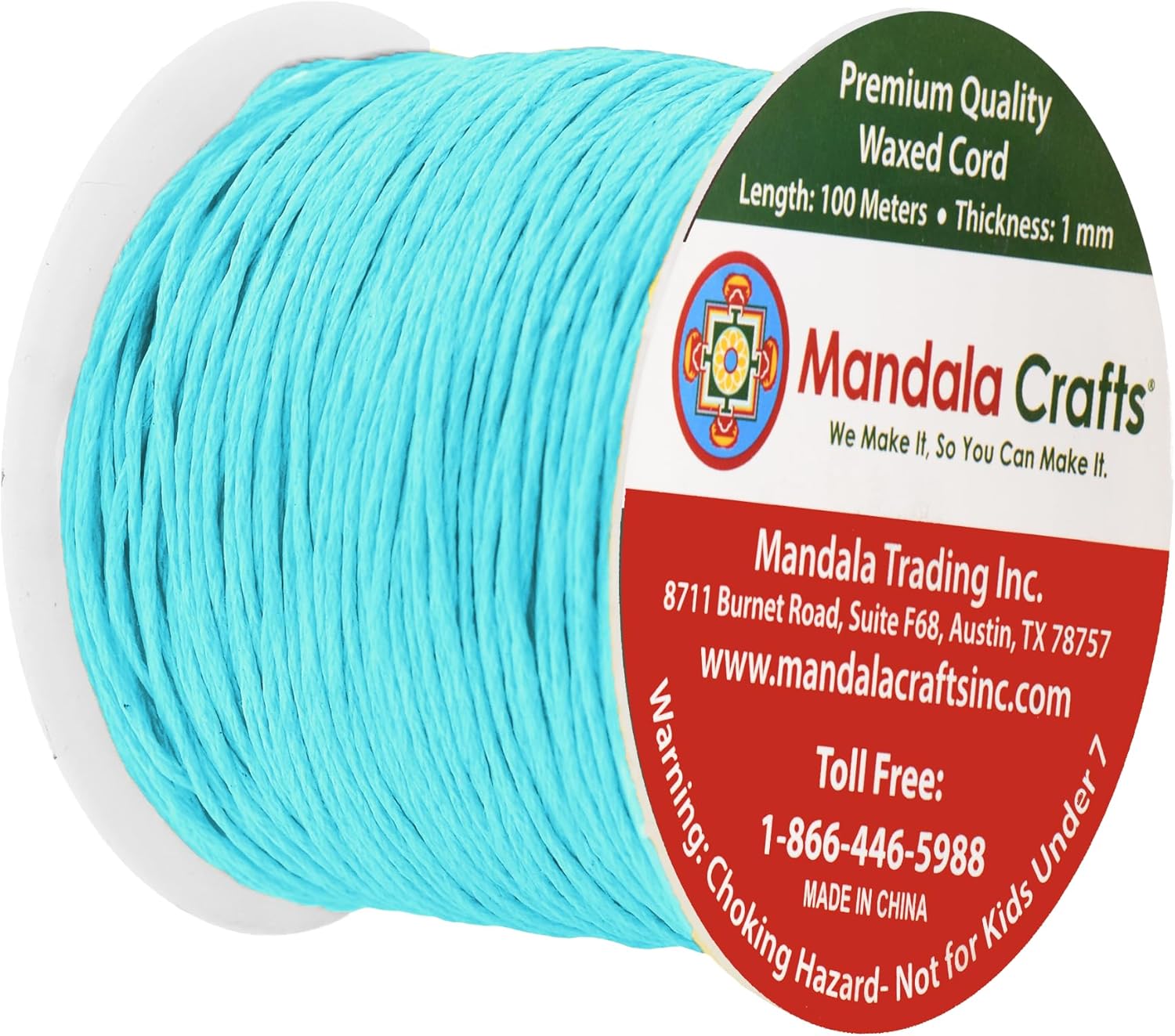 Mandala Crafts 1mm 109 Yards Turquoise Cotton Waxed Cord for Jewelry Making Bracelet Cord Waxed String - Beading String Thread Jewelry Cords for Necklaces String