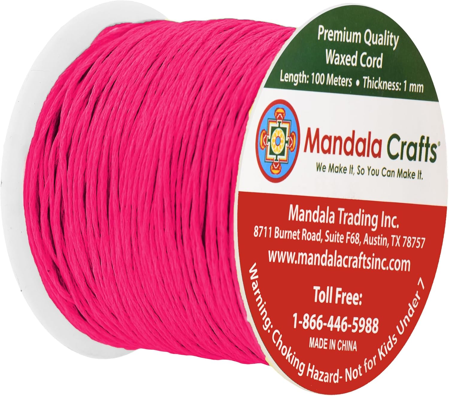 Mandala Crafts 1mm 109 Yards Hot Pink Cotton Waxed Cord for Jewelry Making Bracelet Cord Waxed String - Beading String Thread Jewelry Cords for Necklaces String
