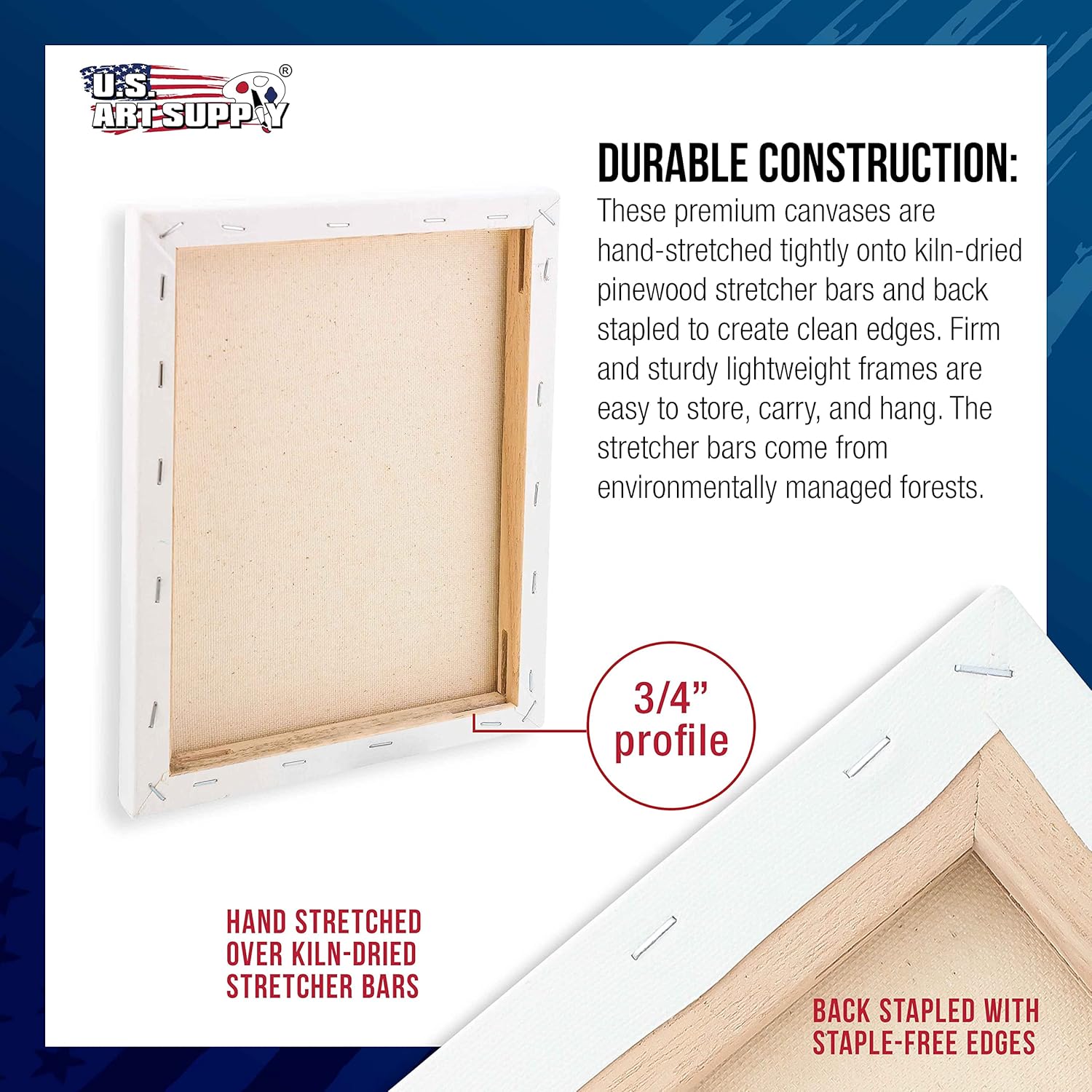 - Durable Construction: These premium canvases are hand-stretched tightly onto kiln-dried pinewood stretcher bars and back stapled to create clean edges. Firm and sturdy lightweight frames are easy to store, carry, and hang. The stretcher bars come from environmentally managed forests.