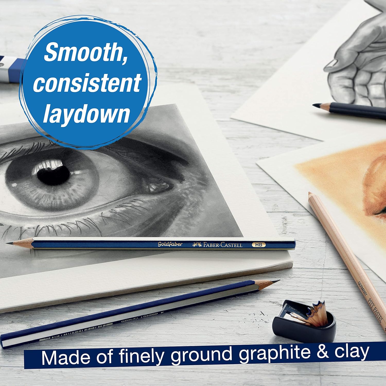 - SKETCHING PENCIL SET - Includes 6 artist quality Faber-Castell graphite pencils in various degrees of lead hardness: 2H, HB, B, 2B, 4B, 6B. Made of finely ground graphite and clay, Faber pencils provide a smooth and balanced laydown for superior performance