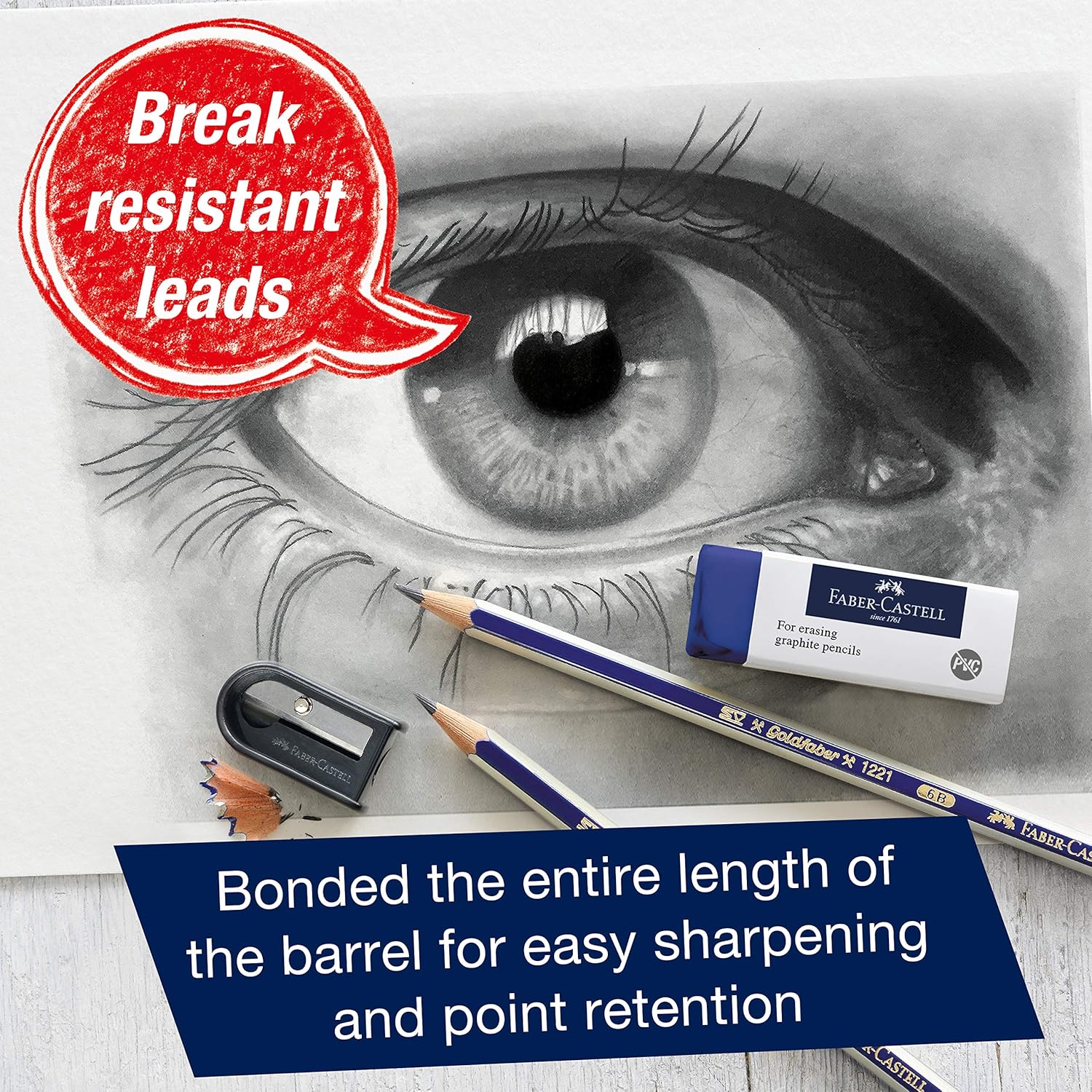- BREAK-RESISTANT LEAD - Faber-Castell graphite pencils feature a break-resistant lead that is glued the entire length of the pencil to ensure limitless drawing and easy sharpening
