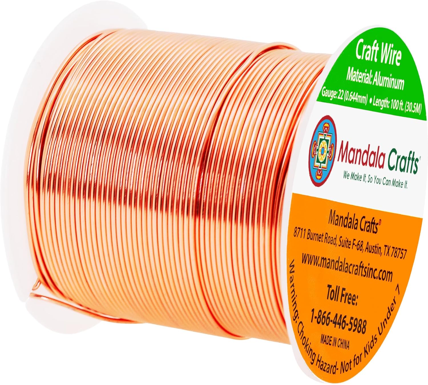 Mandala Crafts 22 Gauge Anodized Aluminum Craft Wire for Jewelry Making - 100 FT Colored Flexible Copper Tone Wire - Bendable for Bonsai Armature Crafting Sculpting