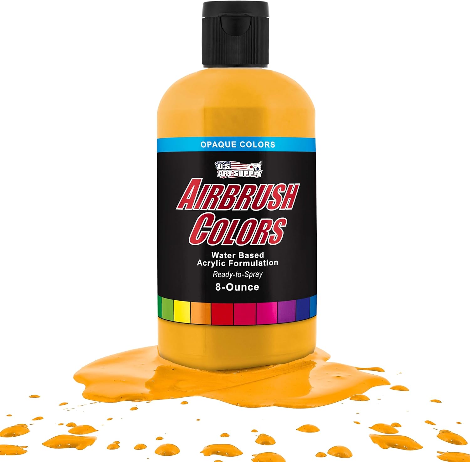 U.S. Art Supply Opaque Canary Yellow Acrylic Special Effects Airbrush Paint - 8oz Ready to Spray Air Brush Paint for Nails, Models, Fabric - Water-Based Air Brush Painting
