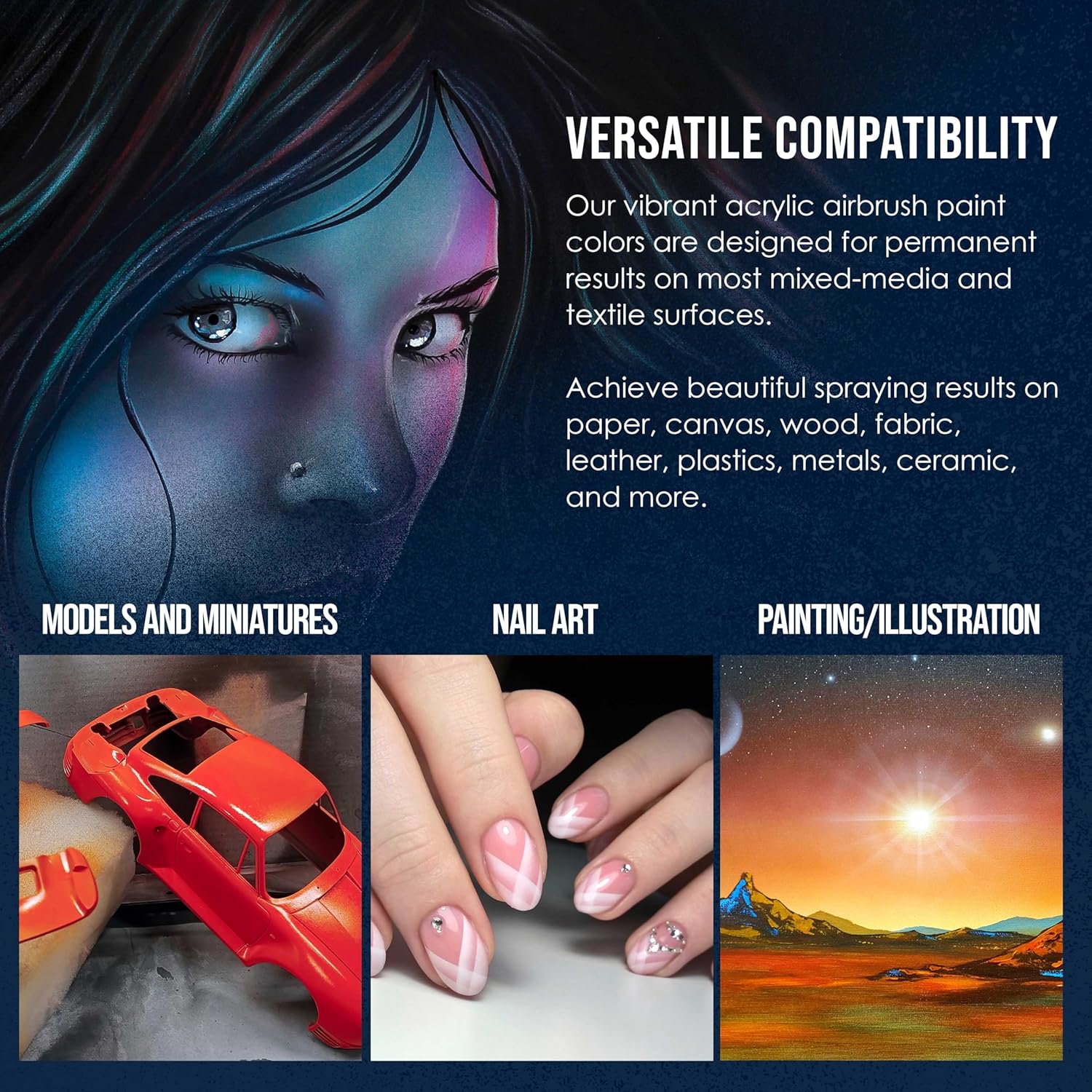 - Opaque Special Effects: This 8-ounce acrylic airbrush paint features opaque colors, allowing the underlying surface or colors to show through. The pre-thinned formula is ready to spray, providing consistent coverage.