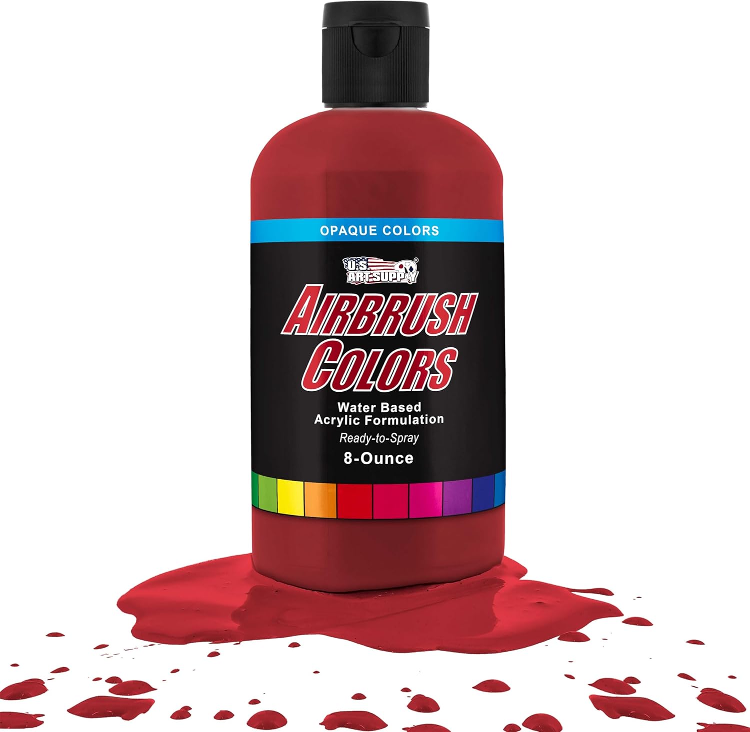 U.S. Art Supply Opaque Crimson Red Acrylic Special Effects Airbrush Paint - 8oz Ready to Spray Air Brush Paint for Nails, Models, Fabric - Water-Based Air Brush Painting