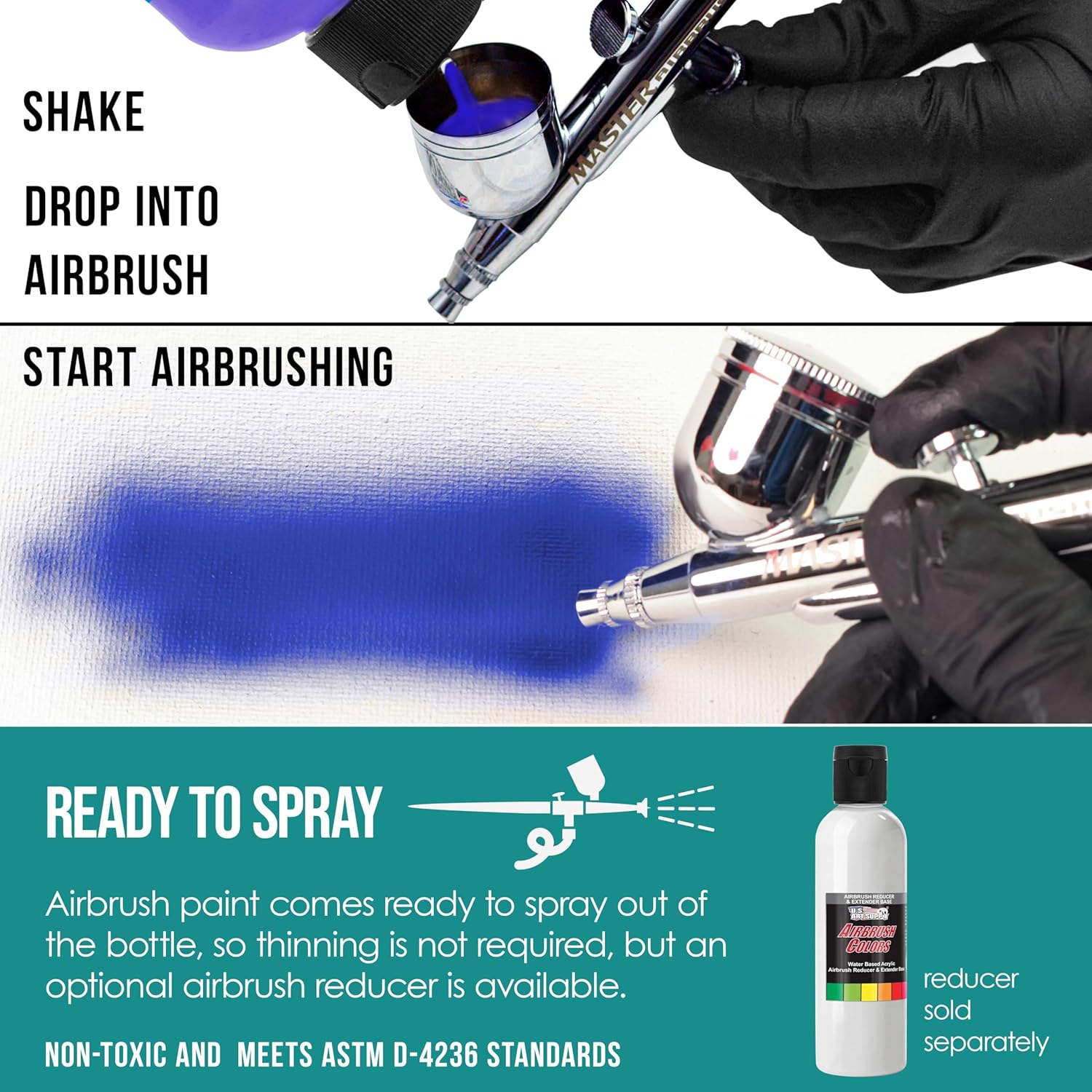 - Ready to Spray: The acrylic spray paint colors are ready to spray straight from the bottle, so no thinning is needed. An airbrush reducer is available for fine line work or to achieve a customized consistency.