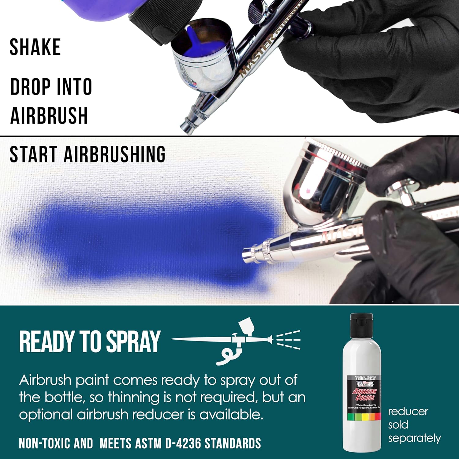 - Ready to Spray: The acrylic spray paint colors are ready to spray straight from the bottle, so no thinning is needed. An airbrush reducer is available for fine line work or to achieve a customized consistency.