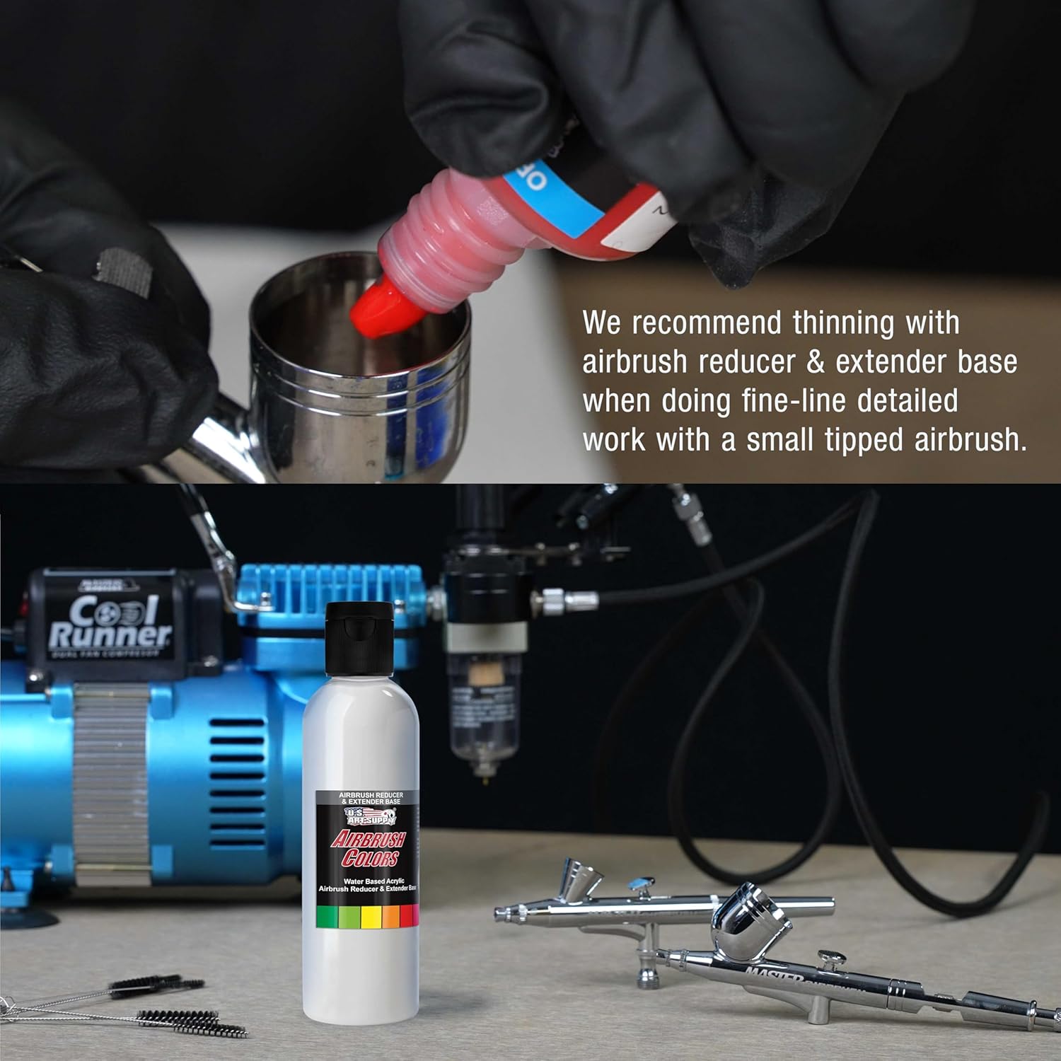 - Formulated for Acrylics: A 4-ounce pint bottle of water-based acrylic airbrush paint thinning reducer and extender base. This solution is designed to make colors thinner, increase transparency, and improve color flow for detailed airbrush work.