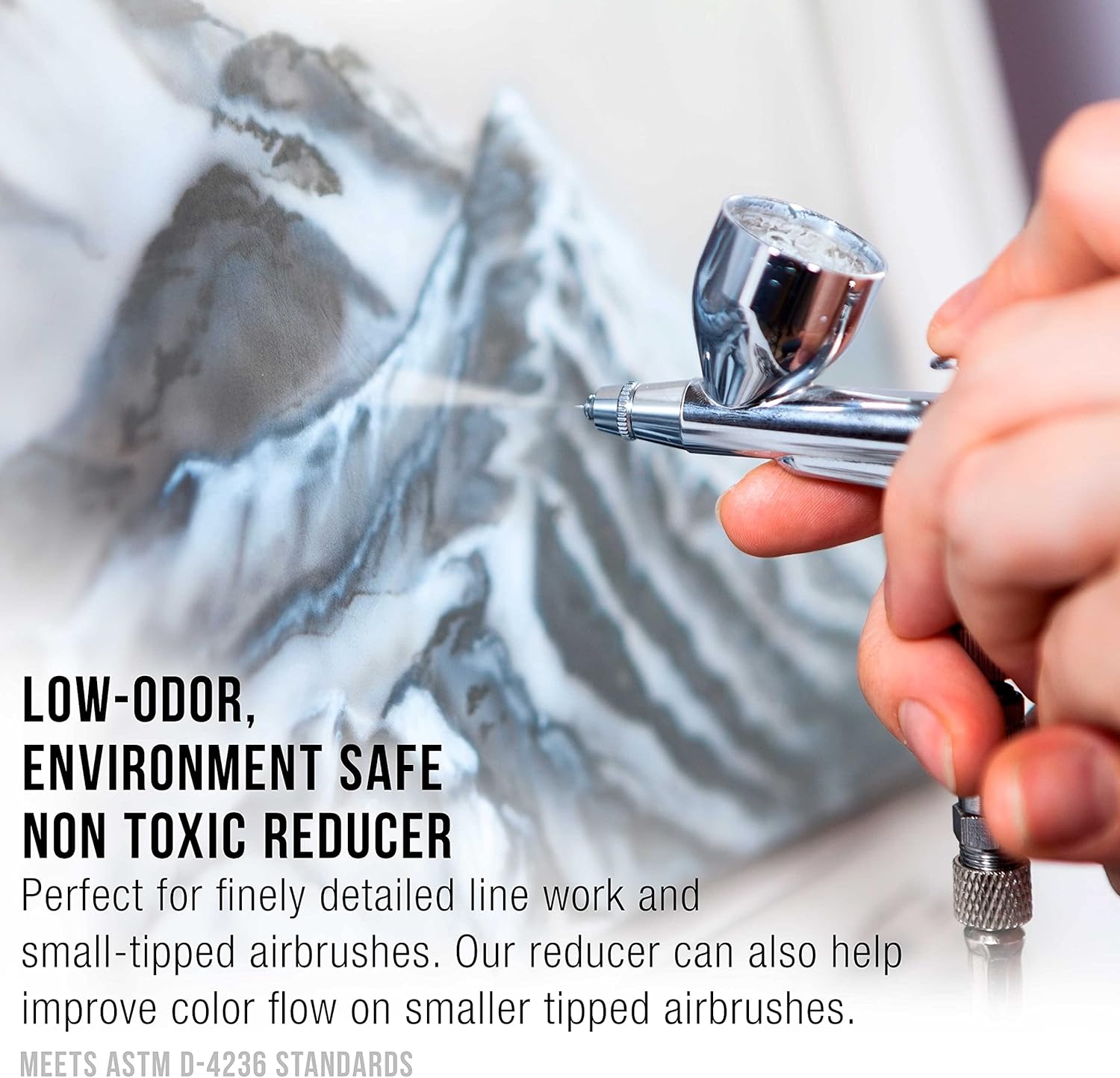 - Maintains Paint Quality: Contains acrylic-based binders to ensure that the paint's quality and adhesion are not diminished when reduced for use with smaller-tipped airbrushes or for achieving various artistic effects.