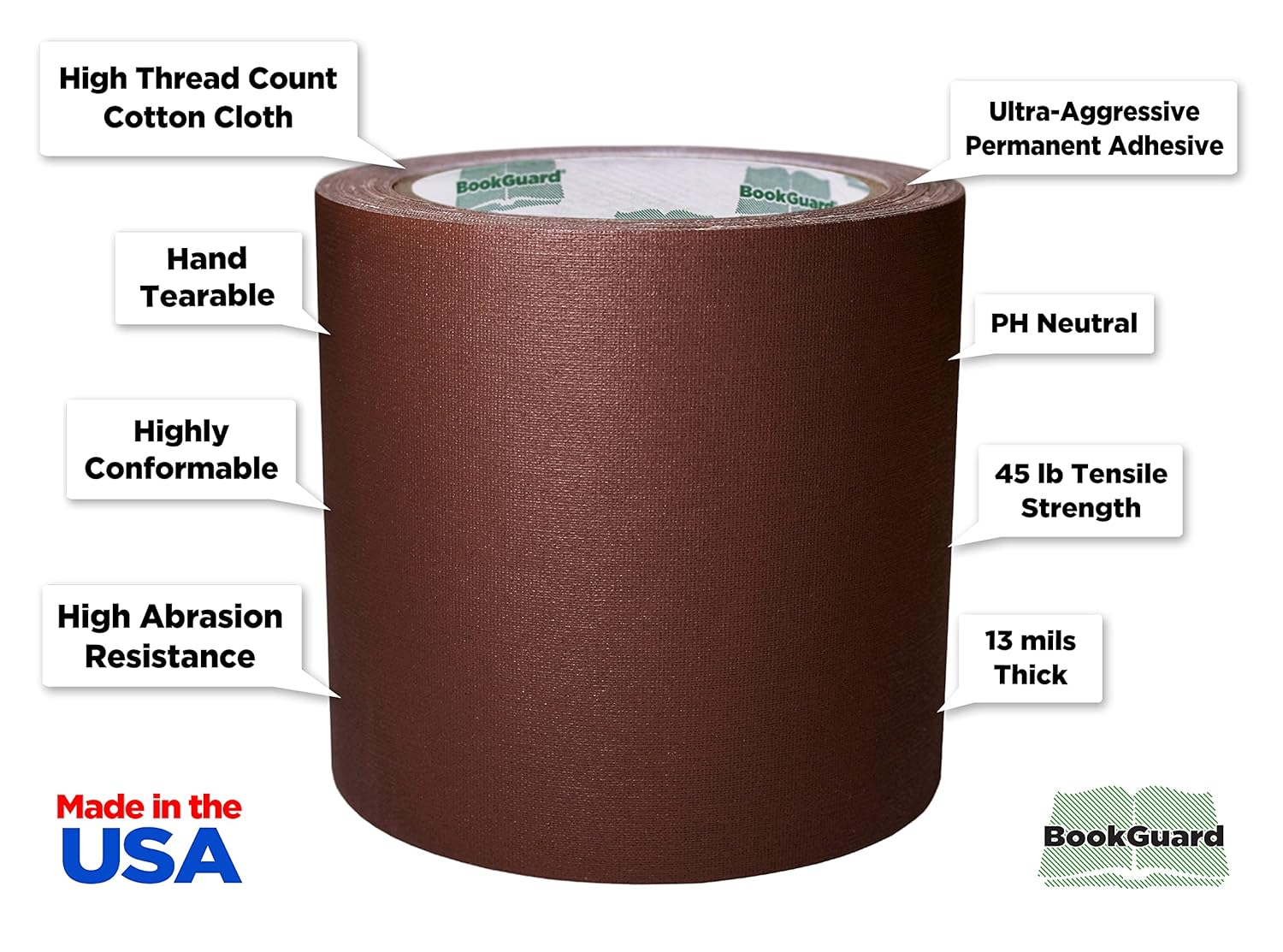 BookGuard 4 inch Premium Bookbinding Repair Cloth Tape, 15 Yard Roll, Brown
