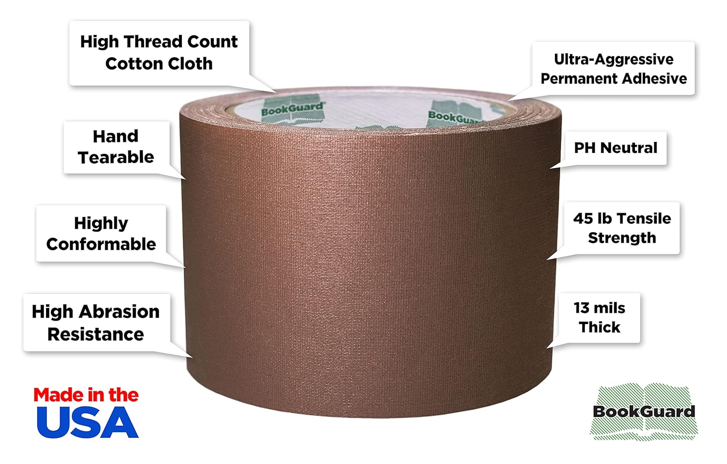 BookGuard 3 inch Premium Bookbinding Repair Cloth Tape, 15 Yard Roll, Tan
