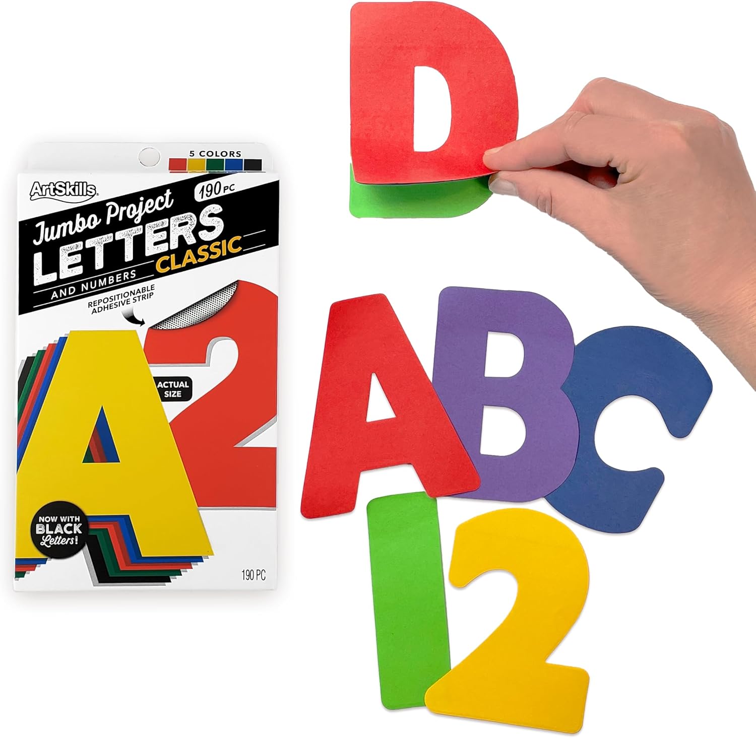 ArtSkills Poster Letters 4” Paper Letters for Poster Board Projects, Classroom Bulletin Boards, Sign Making Supplies,Classic Primary, 190 Pieces