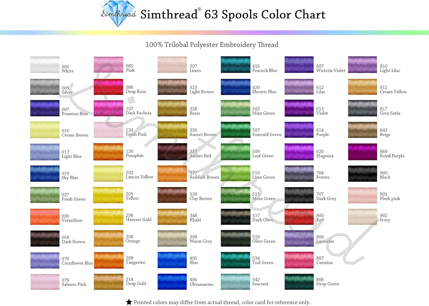 - β SIMTHREAD. Over 20 years manufacture experience, giving you the best Polyester Embroidery Machine Thread. Happy sewing and Embroidery your own colorful life! MAKE SURE THROUGH "Simthread"