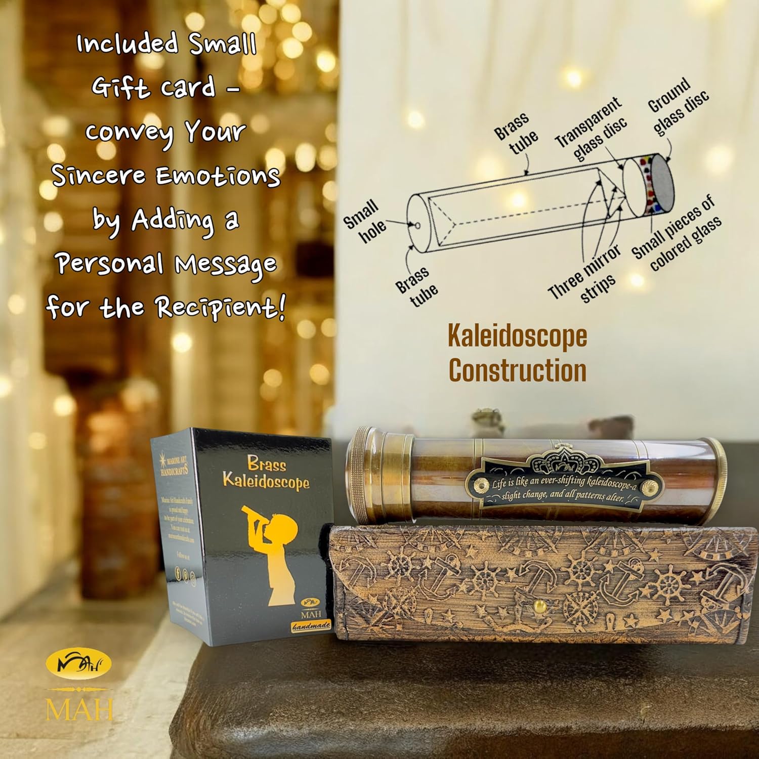 Handcrafted Brass Kaleidoscope – Vintage Nautical Collectible Gift for Kids, Teens & Adults – Sentimental Keepsake with Greeting Card – Educational Toy & Home Décor Accent – Timeless Pattern Design