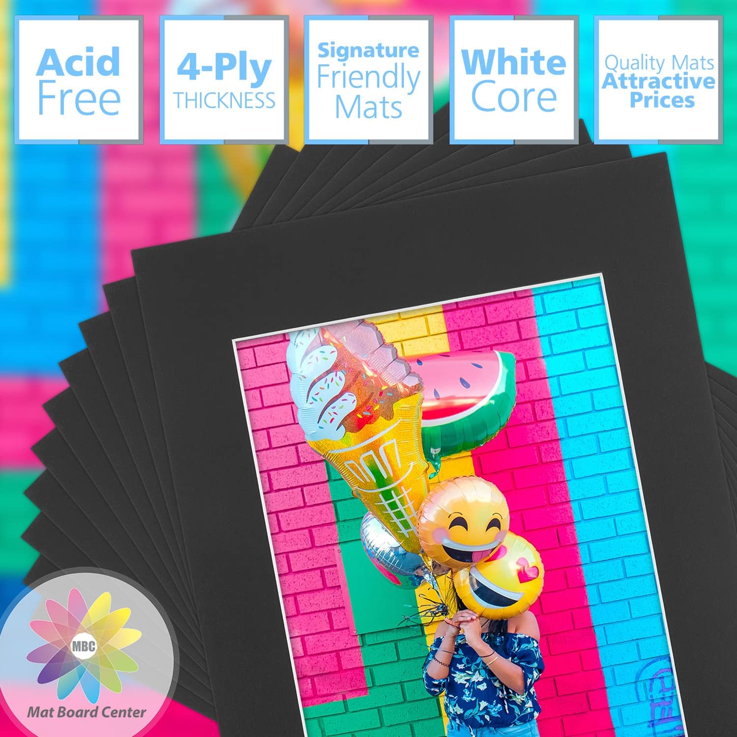 Mat Board Center, Pack of 10, 11x14 for 8x10 Black Color Mats - Bevel Cut, Acid Free, 4-ply Thickness, White Core - for Pictures, Photos, Framing