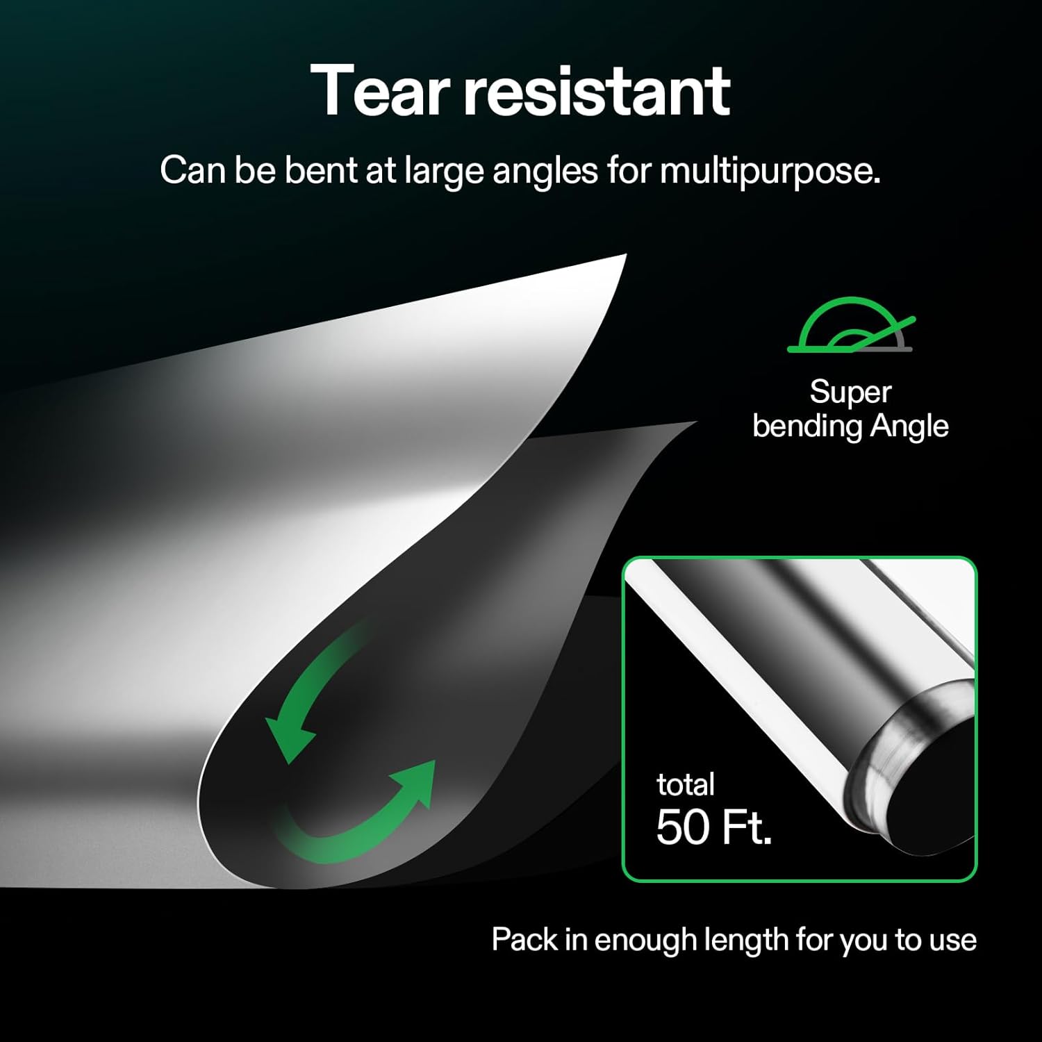 - Ideal Size: This 4ft. x 50ft. reflective film is big enough to cover all of your demands, such as covering the outdoor grow room; This film also could be cut into different sizes to fit your other purposes