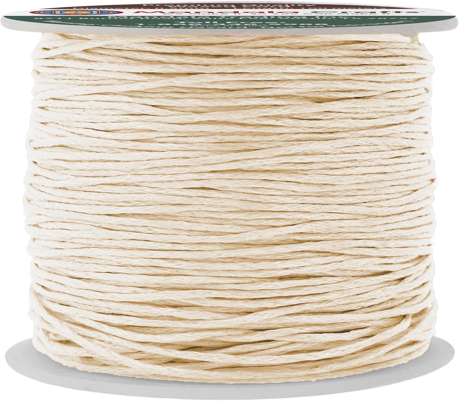 - Bulk Cream Waxed Cord Roll: The non elastic colorfast 0.5mm cotton cord with heat treatable ends is fraying resistant & bleed free. The continuous 3 ply 109 yds long 0.5mm jewelry waxed cord made from 100 percent cotton is easy to cut, tie, knot, or glue.