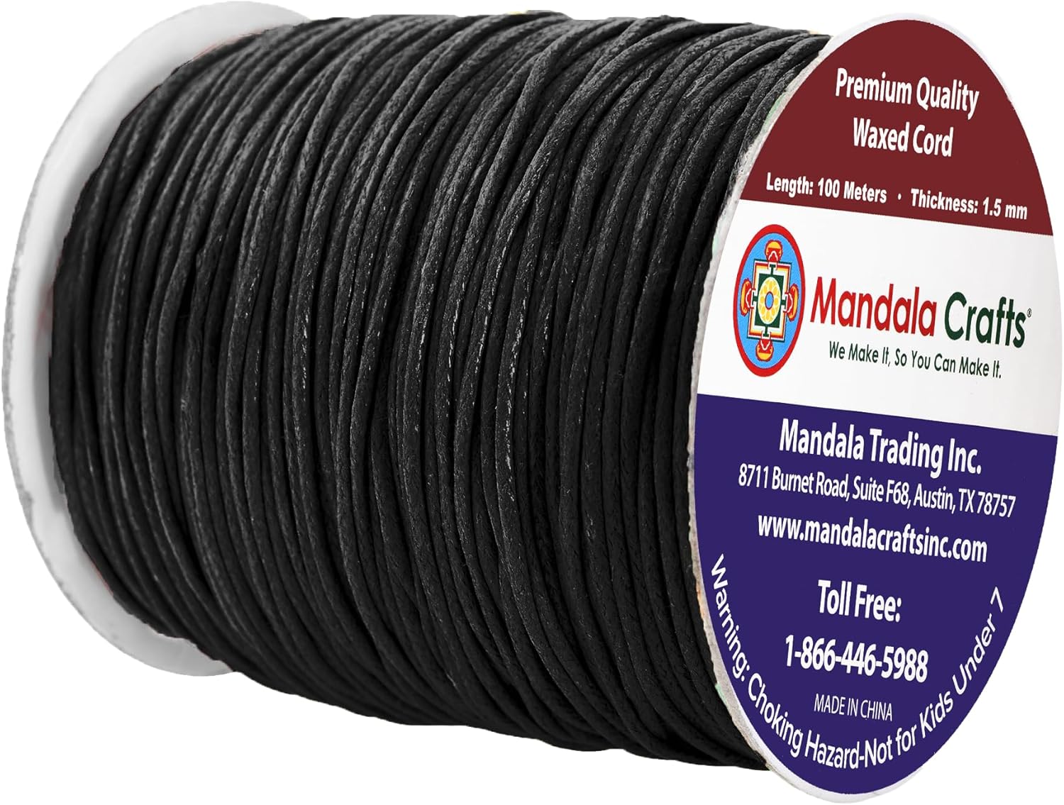 Mandala Crafts 1.5mm 109 Yards Black Cotton Waxed Cord for Jewelry Making Bracelet Cord Waxed String - Beading String Thread Jewelry Cords for Necklaces String