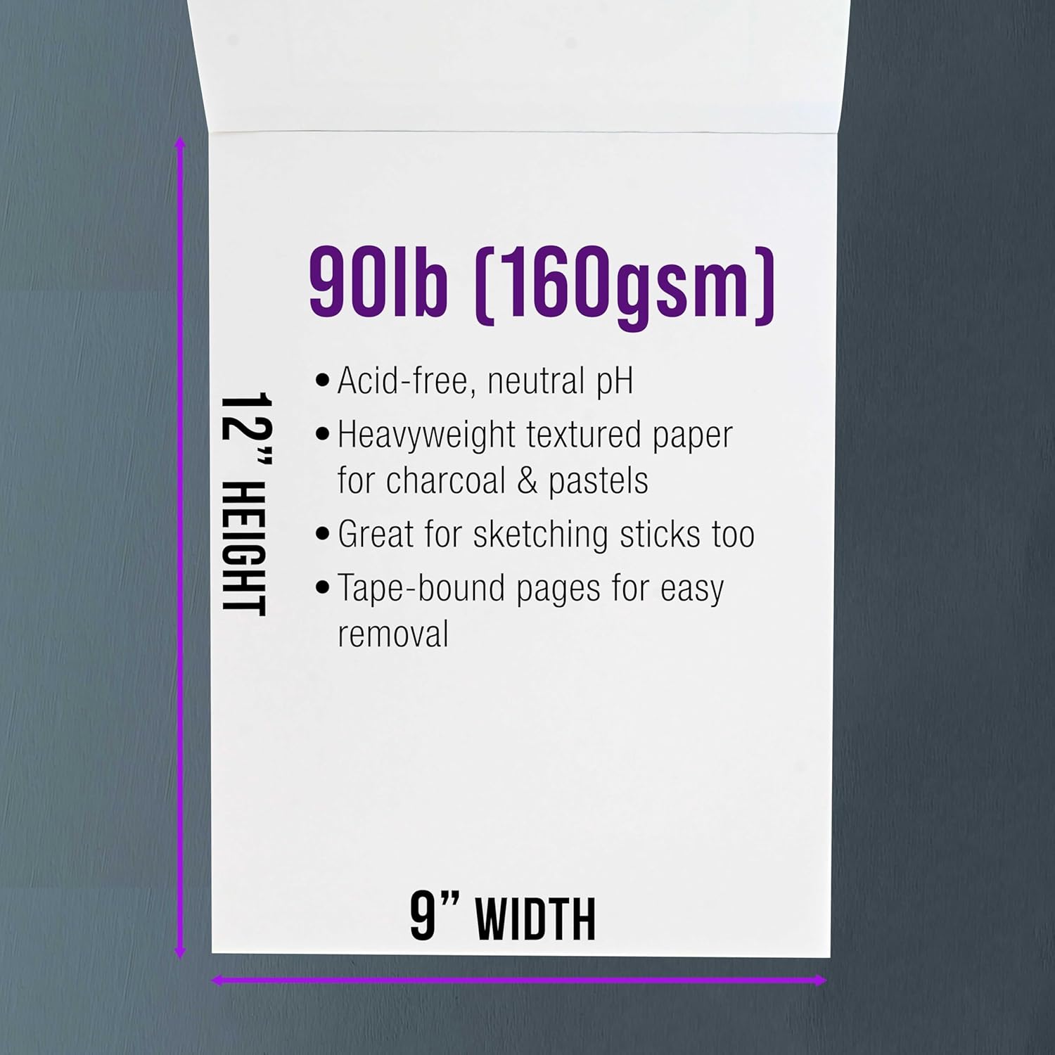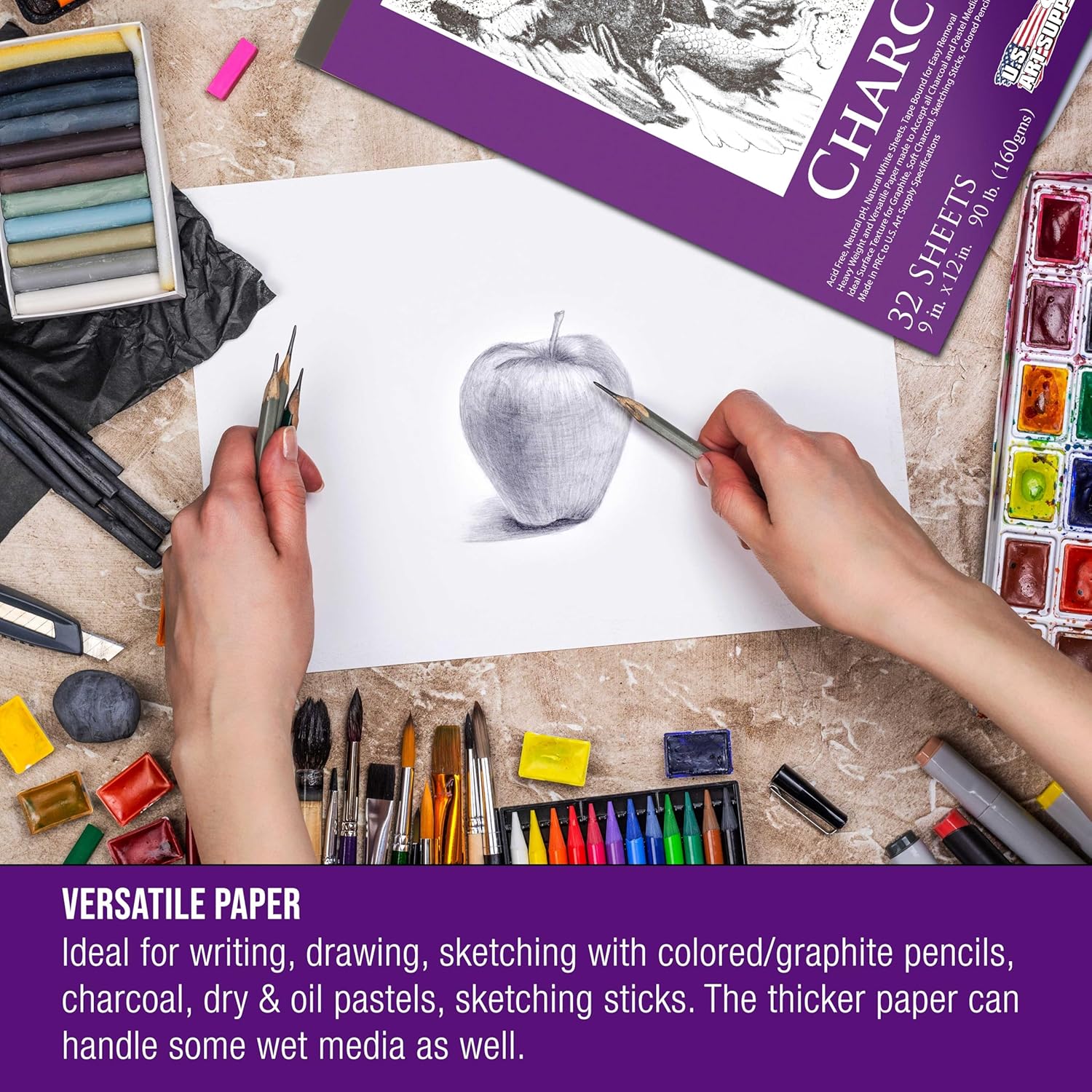 U.S. Art Supply 9" x 12" Premium Heavy-Weight Charcoal Sketchbook (2 Pack, 64 Sheets Total) - 90lb (160gsm) Sketch Book Pad for Charcoal, Pencil & Pastel Drawing