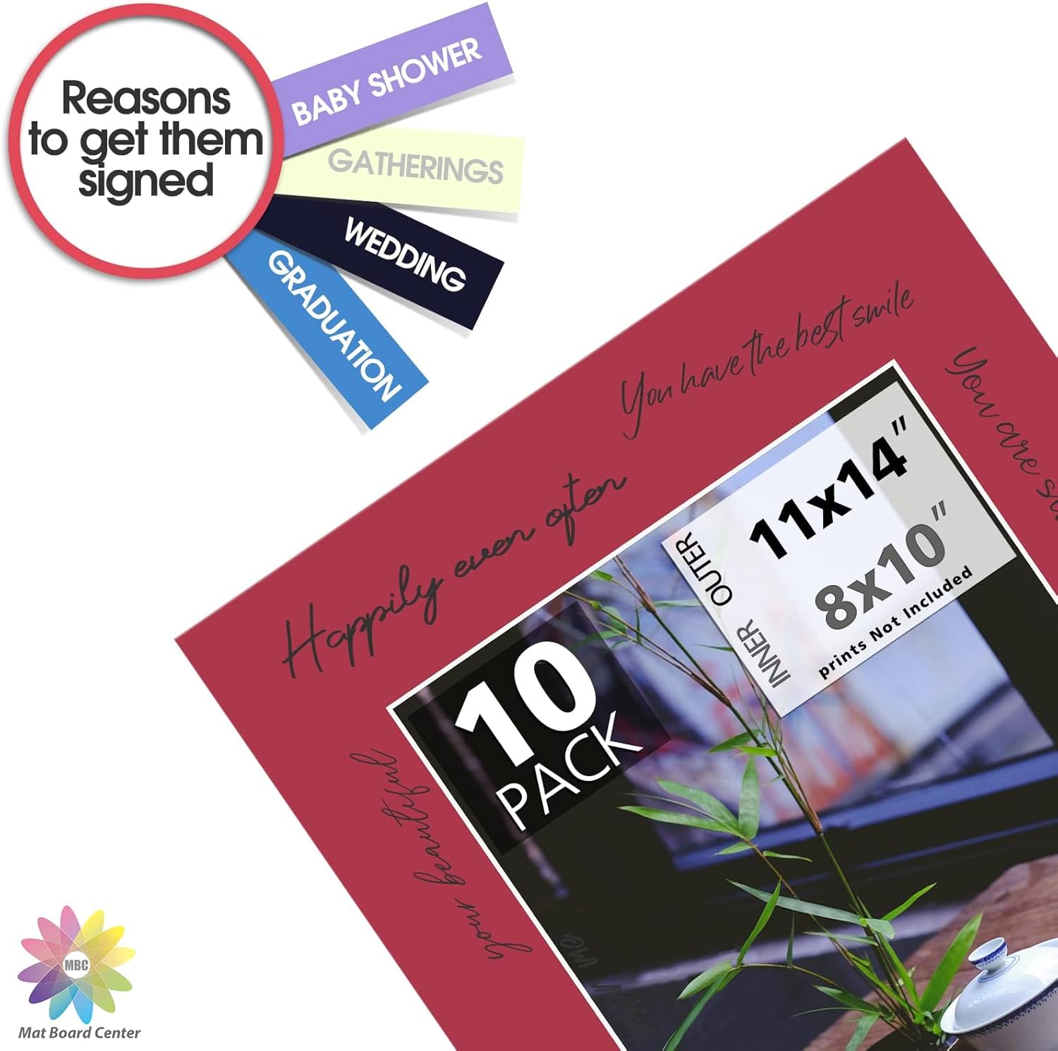 MBC Mat Board Center, Acid Free Pack of 10 11x14 Mixed Colors White Core Picture Mats for 8x10 Photos