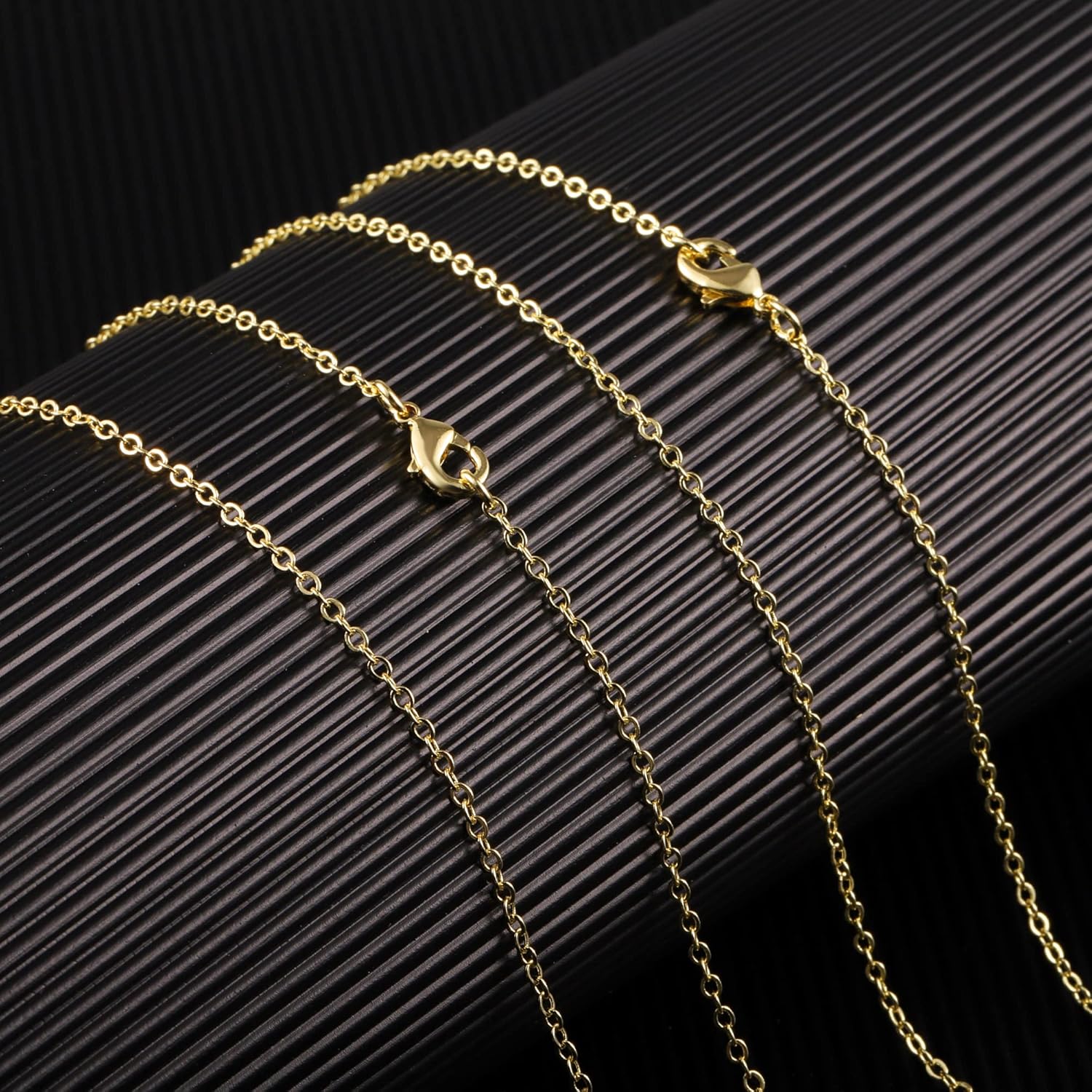 Wholesale 12 PCS Gold Plated Brass Flat Cable Chain Finished Necklace Chains Bulk for Jewelry Making (18 Inch(1.5MM))