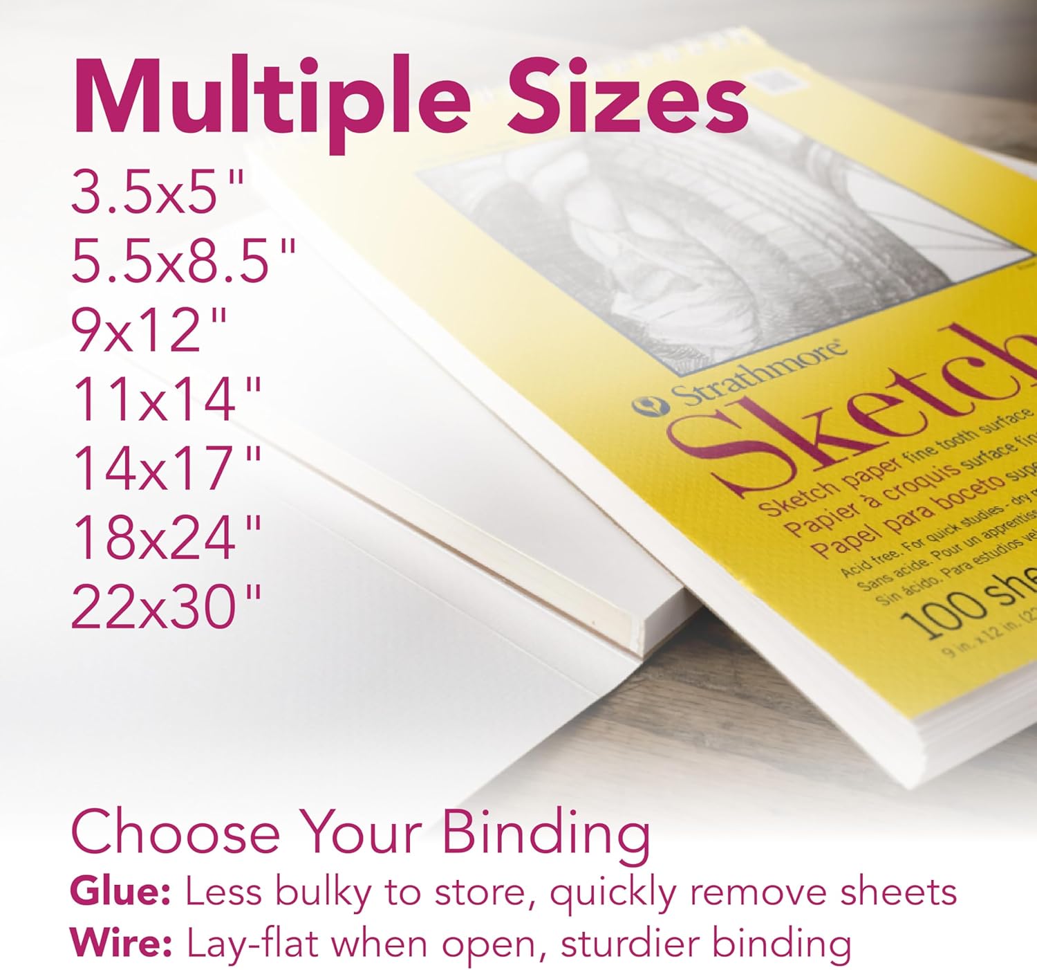 Strathmore 300 Series Sketch Pad, 5.5x8.5 inch, 100 Sheets, Side Wire - Artist Sketchbook for Drawing, Illustration, Art Class Students