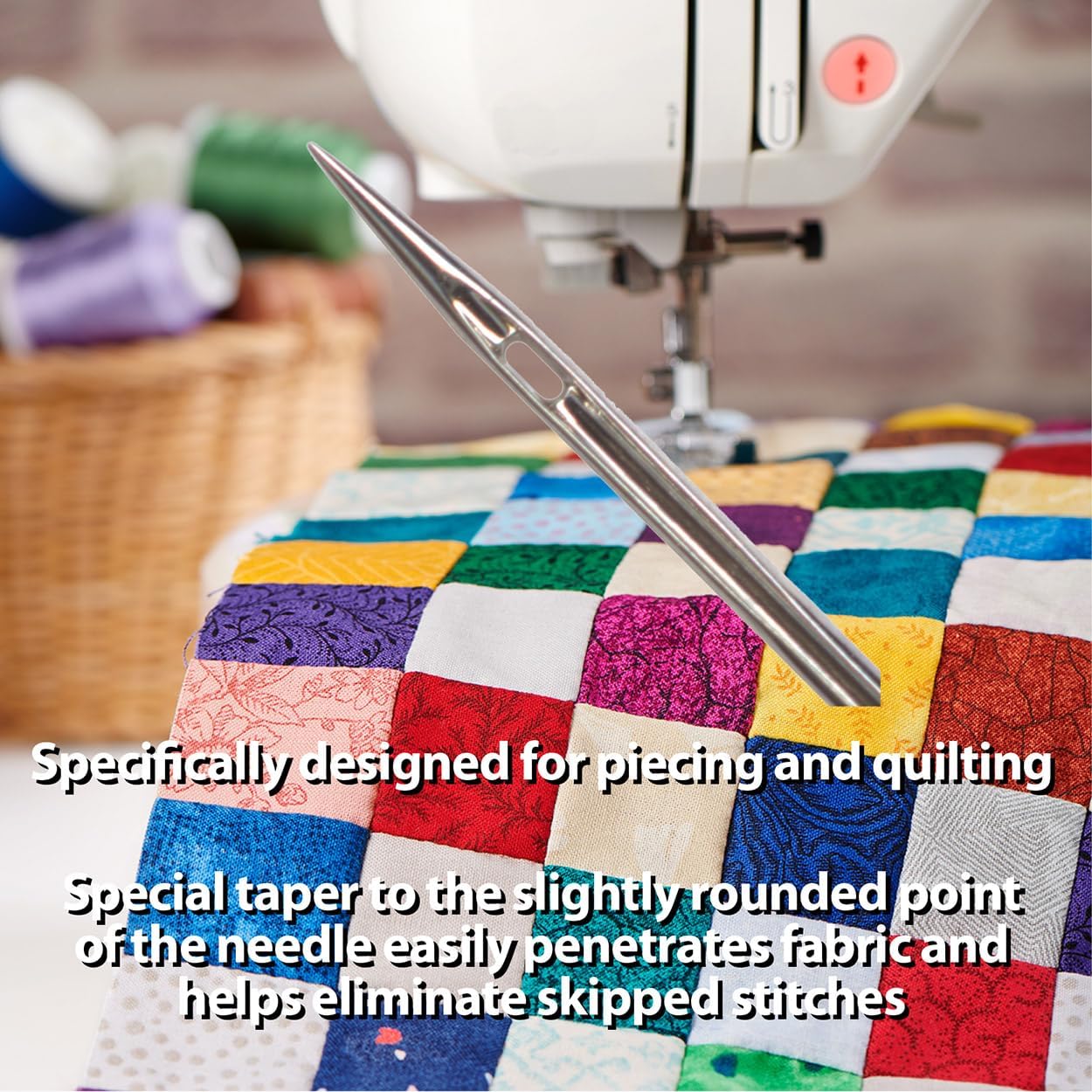 - NO SKIPS, JUST PERFECT STITCHES: SCHMETZ Quilting Needles feature a special taper to the slightly rounded point that effortlessly penetrates fabric, delivering smooth, consistent, skip-free stitches—perfect for both piecing and machine quilting