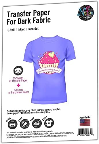 - Pack of 25 Iron On T-Shirt Printing Paper in 8.5"X11” for Dark and Black T-Shirts with 2 sheets of reusable parchment for ironing. NuFun’s patented technology has been used for 25+ years by both professionals and amateurs to create custom designs for family events, businesses, promotional gifts, and more.