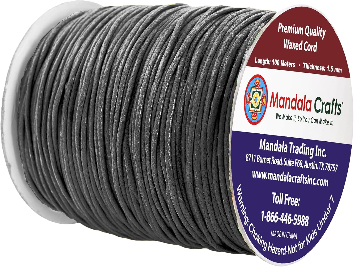 - Bulk Dim Grey Waxed Cord Roll: The non elastic colorfast 1.5mm cotton cord with heat treatable ends is fraying resistant & bleed free. The continuous 3 ply 109 yds long 1.5mm jewelry waxed cord made from 100 percent cotton is easy to cut, tie, knot, or glue.